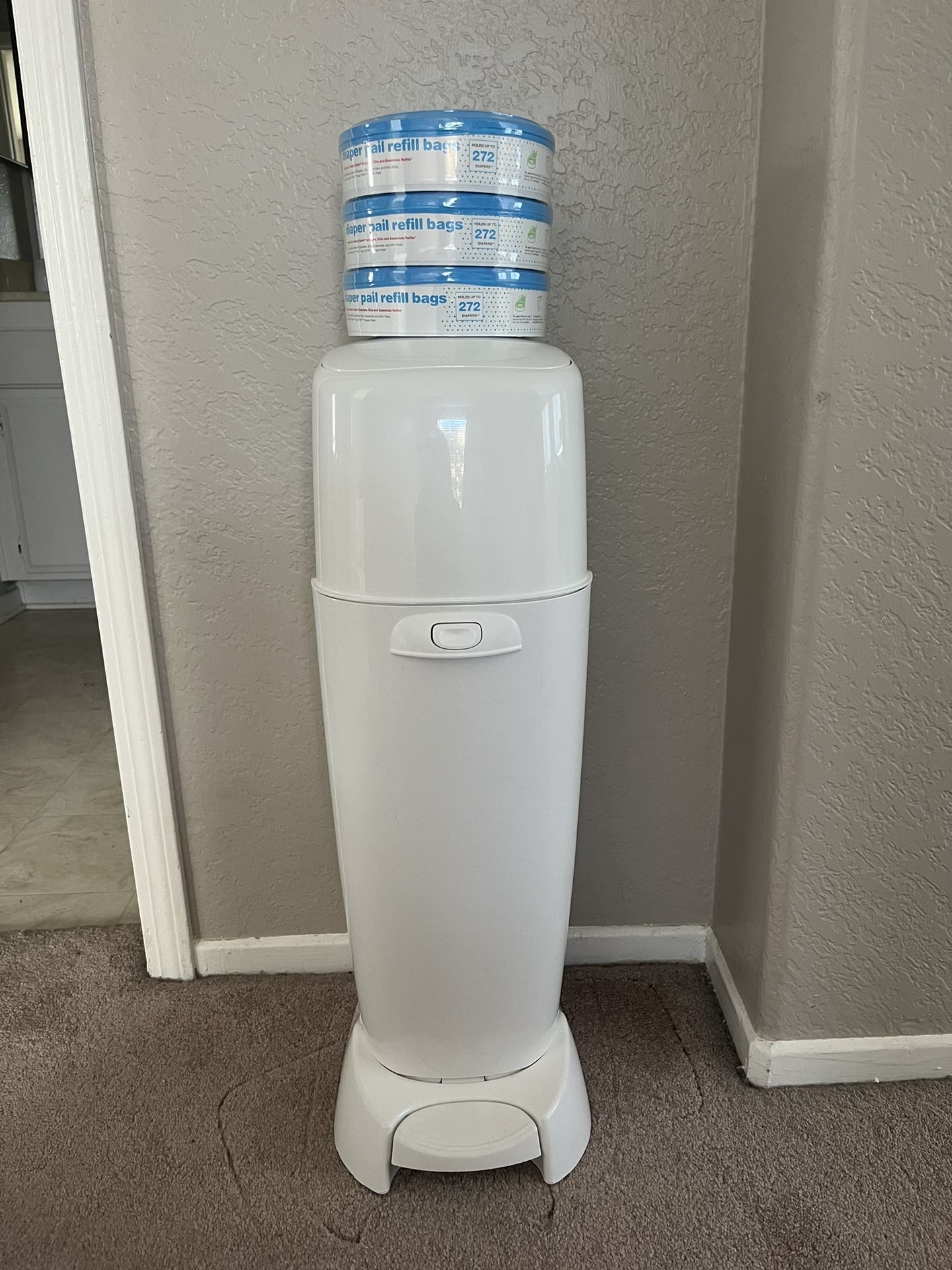 Great condition diaper genie with 3 unopened refillable bags.