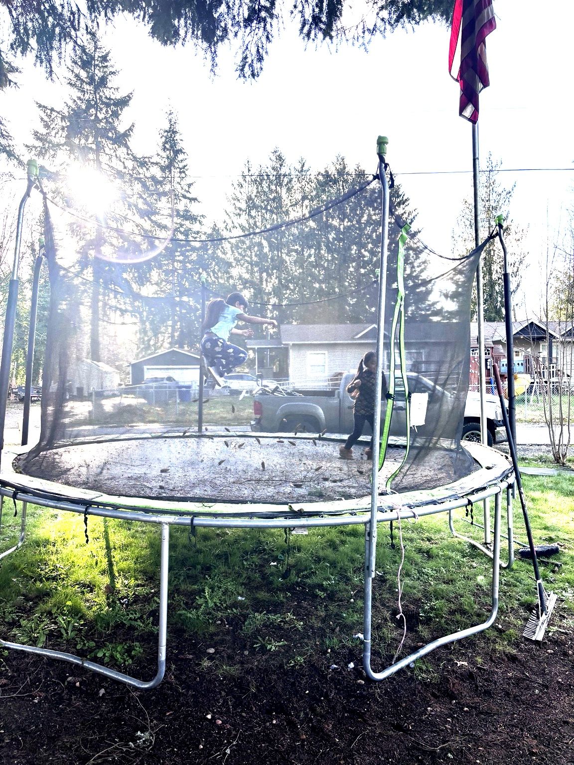 Kien yegue primero se lo lleva Trampolín grande con red de seguridad Trampolín grande con red de seguridad. Está usado, pero en buenas condiciones. Lo hemos tenido aproximadamente 1 año de uso. Es fuerte, seguro y perfecto para que los niños se diviertan al aire libre. A mis niños les encanta, pero necesitamos el espacio en el patio. 💲Precio: $250 o mejor oferta 📍Recoger en Puyallup ⸻ 🇺🇸 Large Trampoline with Safety Net Large trampoline with safety net. It is used but in good condition. We have had it for about 1 year. Very sturdy and perfect for kids to have fun outside. My kids love it, but we need the space in the yard. 💲Price: $250 or best offer 📍Pickup in Puyallup
