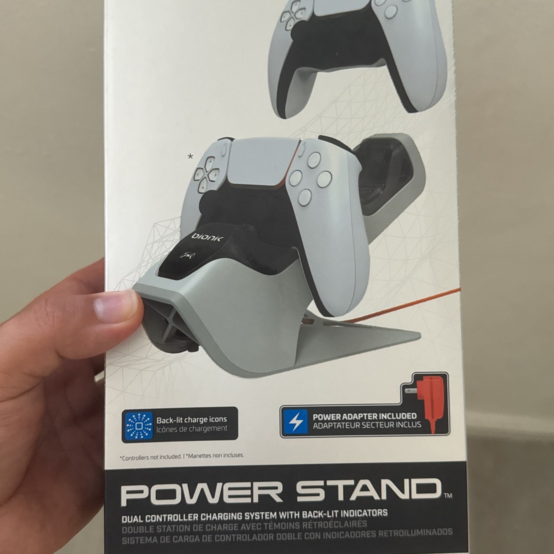 Power stand for 2 ps5 controllers Charges fast New Still sealed