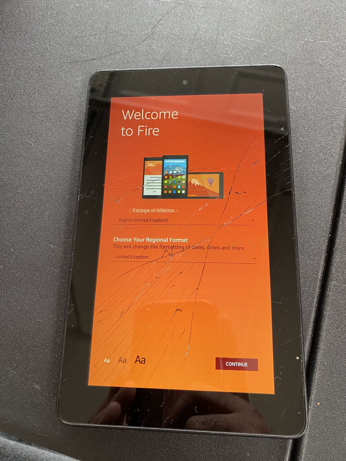 Amazon fire tablet 7. Screen is cracked but is still fully functional. Details of tablet ability in picture. $20 obo pick up only I have 2 tablets.