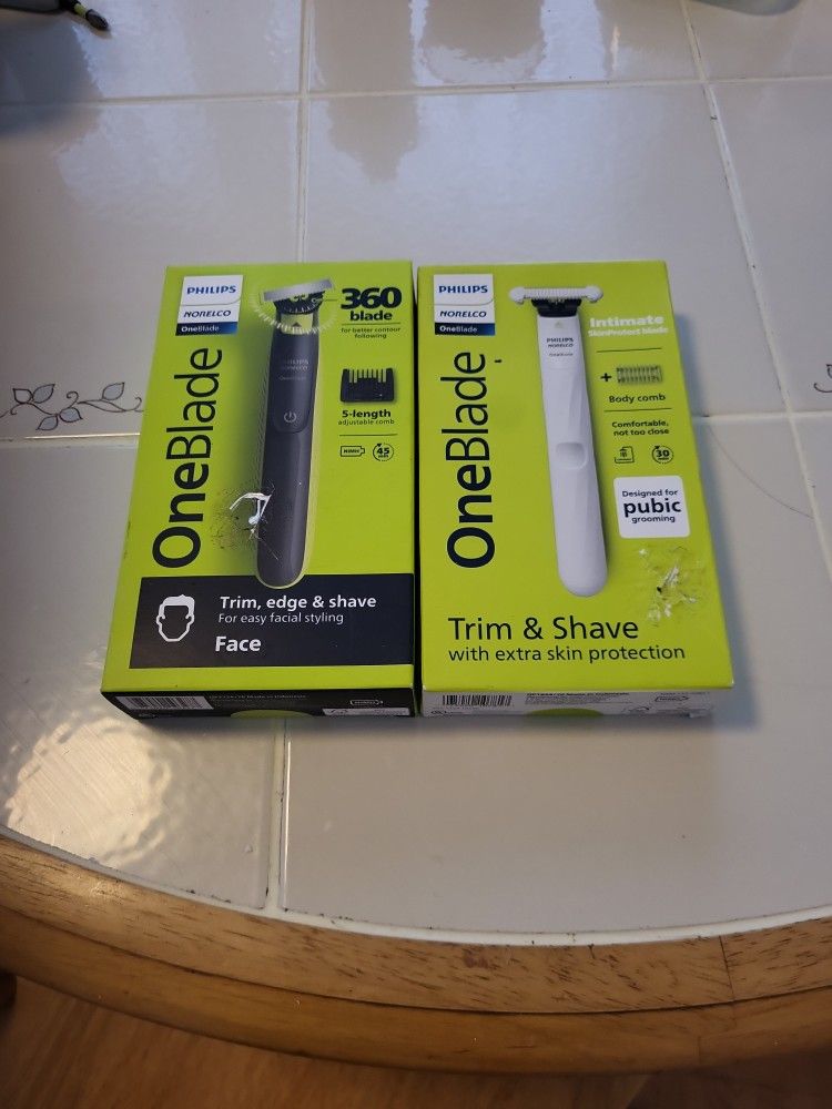 Selling brand new in box Phillips Norelco One Blade 360 trim,edge,shave face electric wireless, rechargeable, waterproof electric razor & Phillips Norelco One Blade Body Trim and shave with extra skin protection selling both for $45