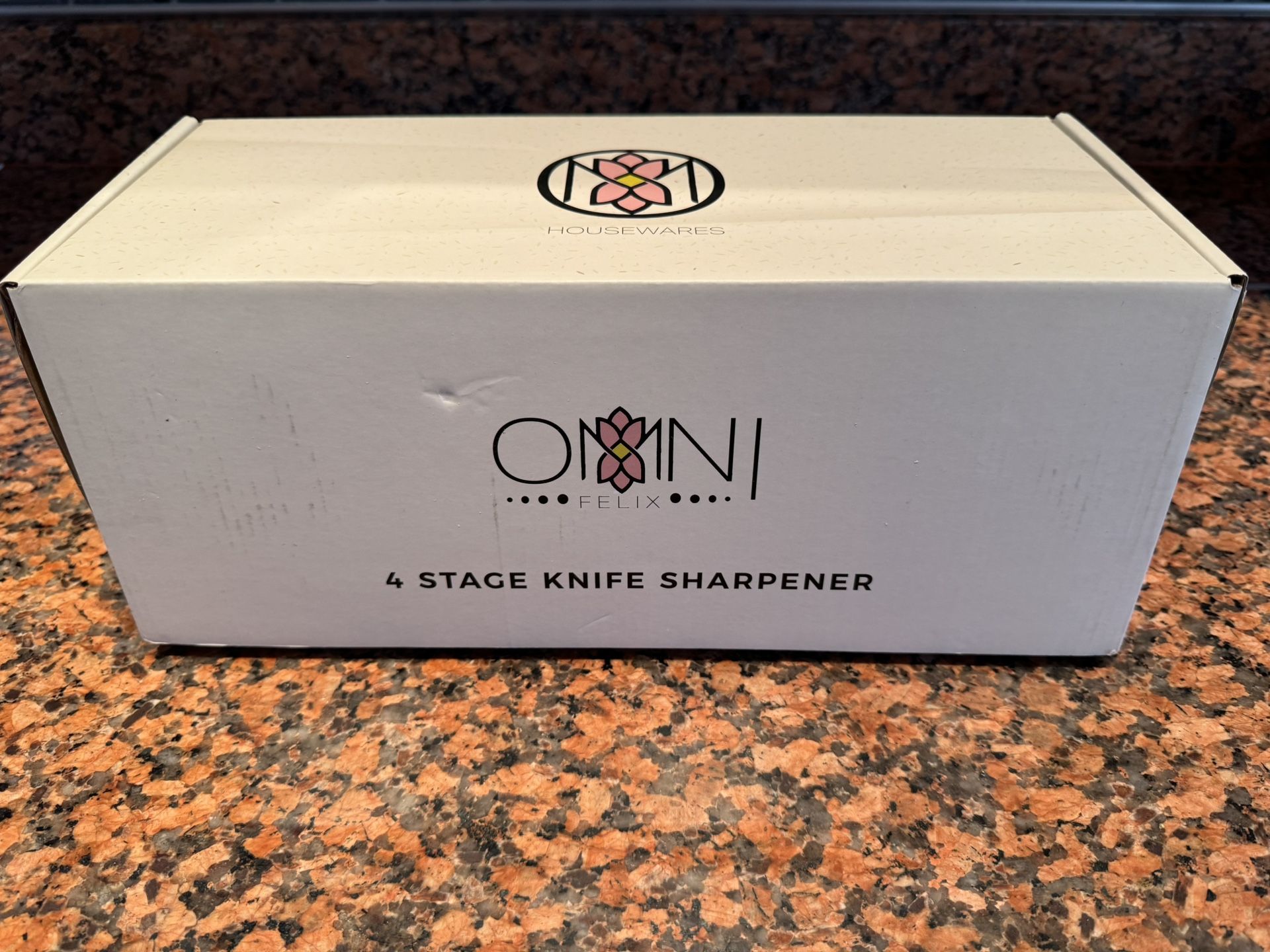 NEW never used Diamond 4 Stage electric knife Sharpener. Bottom has a spot for any metal dust to collect. Stages are coarse grinding, fine grinding, precision grinding, and polishing. 2 angles for each stage.