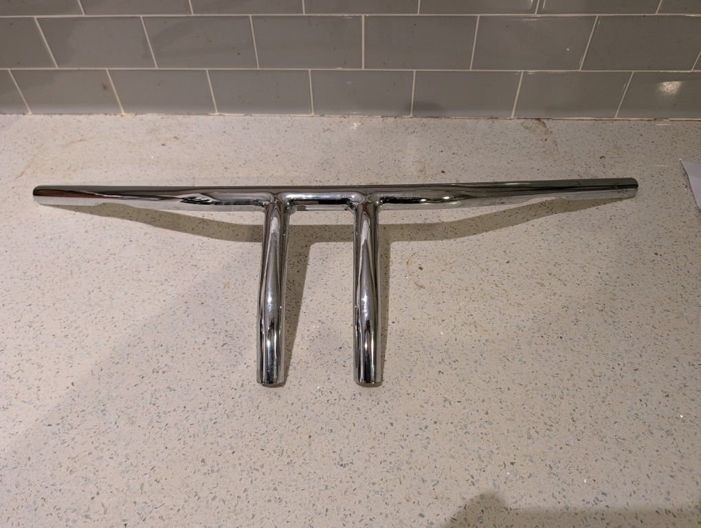 Never used handlebars with risers. These should fit 98 to 2005 Harley Davidson. Dynas, soft tails , touring and sportsters. $99 OBO