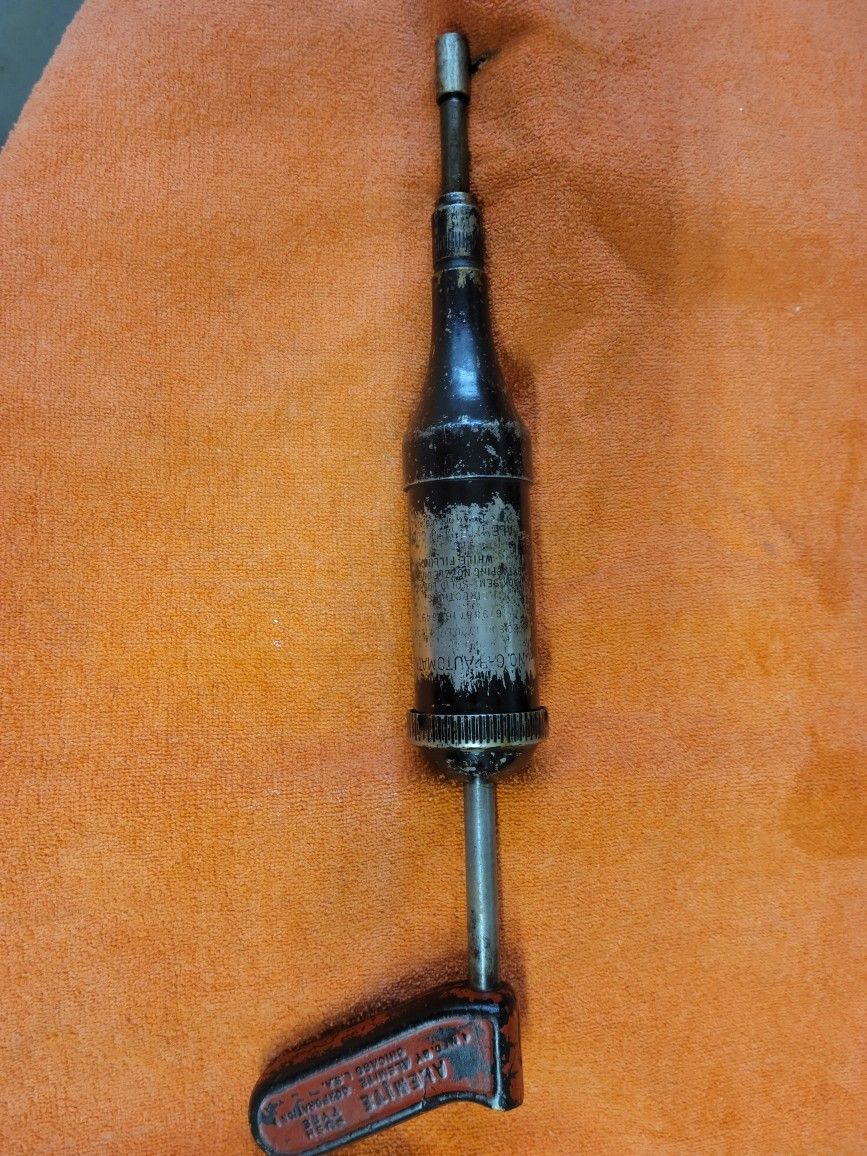 Vintage alemite model # 6554 ,part 6B grease gun. Manufactured by the alemite corporation, Chicago USA This is a WWII vintage item 1940's0 My parents worked for convair aviation in san diego and they used this type of grease gun for aircraft maintenance. This item was also very popular for maintenance on Ford Model A vehicles. The item is sold as-is. There may grease still inside the item.