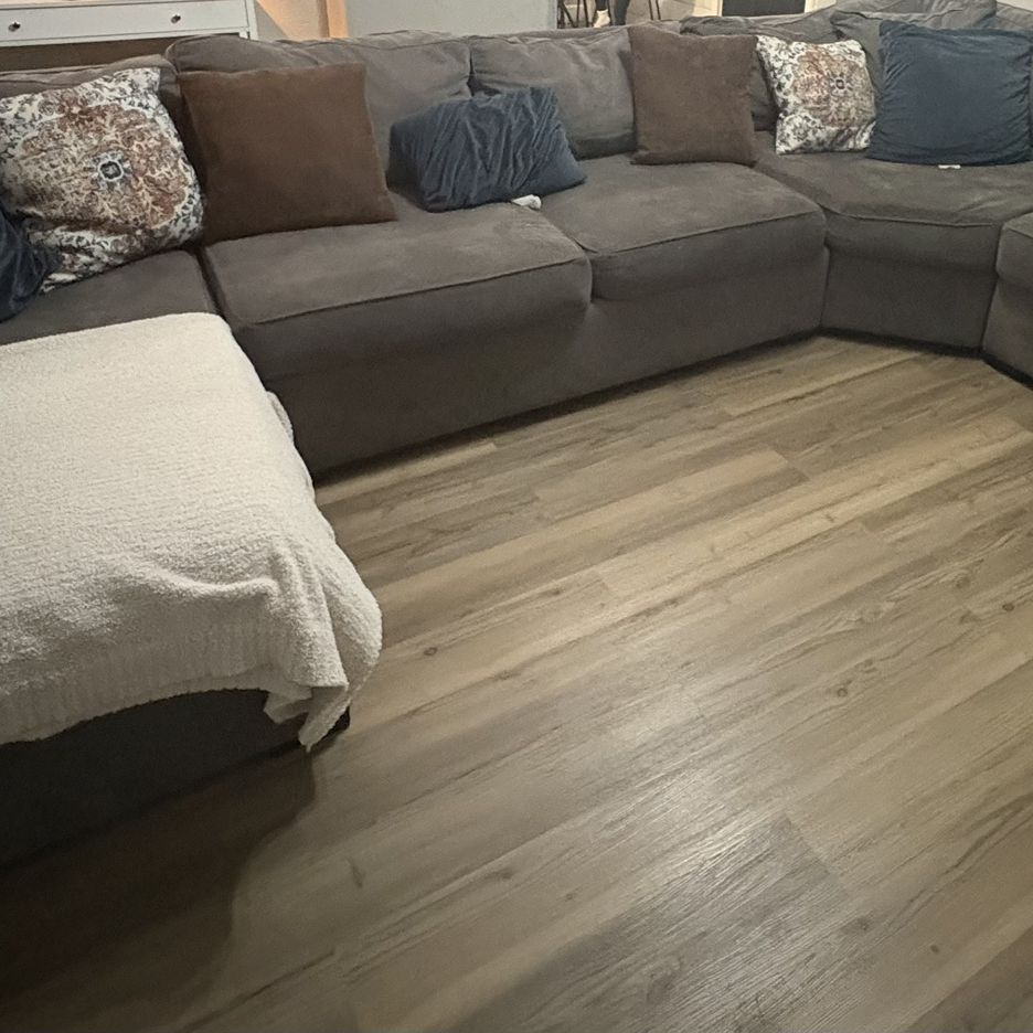 I’ve had these couches for 4 years still in good condition just needs a cleaning. The covers are removable and washable. I moved and couches were too big for my living room need a smaller sectional it’s 5 piece set with the cushions. Decor covers not included.