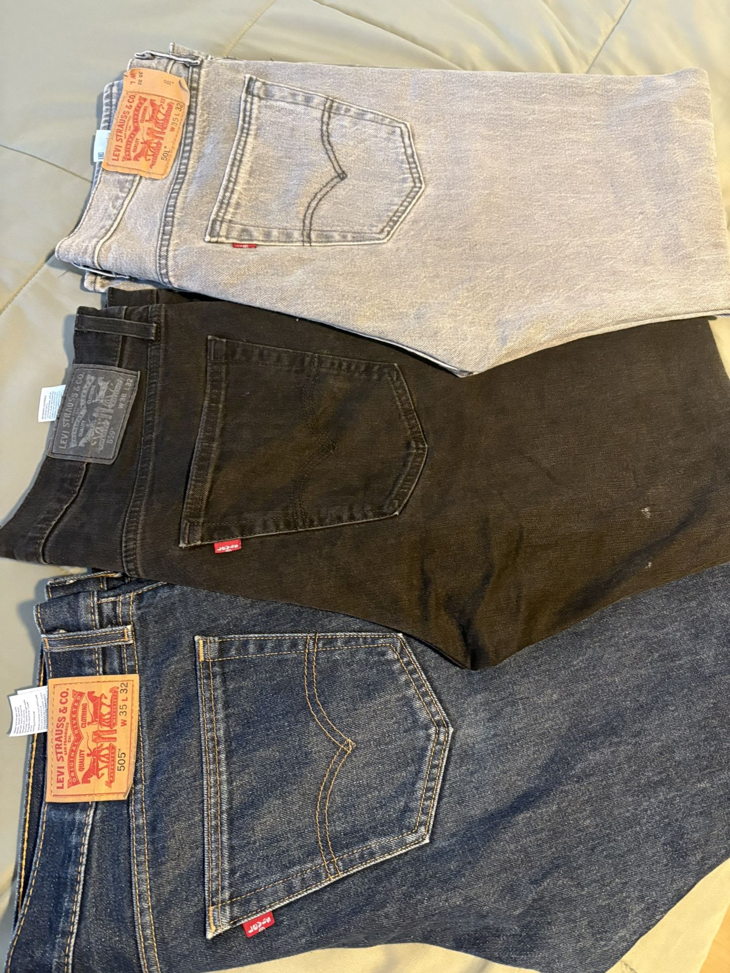 Gray 501 35x43 Blue 505 35x32 Black 559 36x32