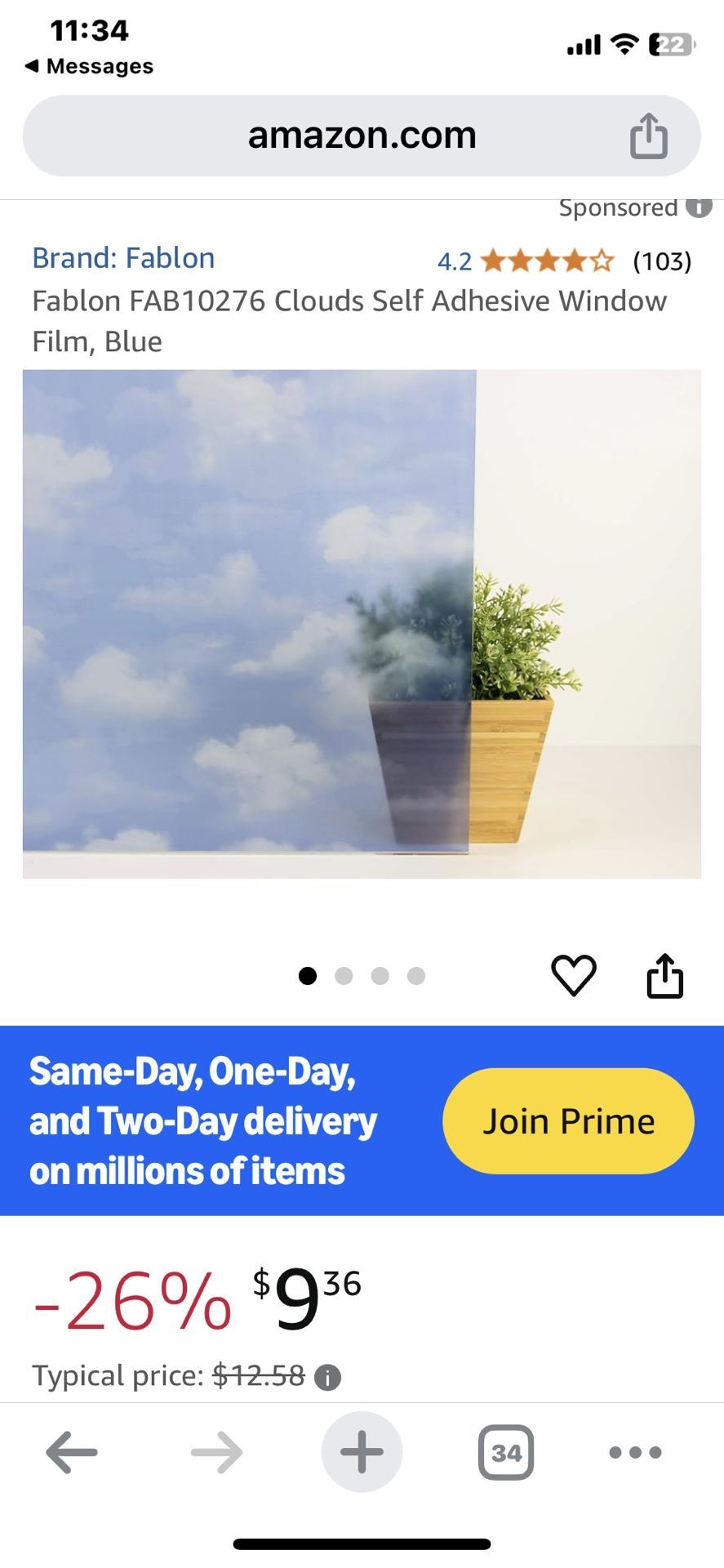 Fablon Self Adhesive Window Film - Clouds ( One Roll 17 Inches X 78 Inched) ($20 For All Three Rolls)