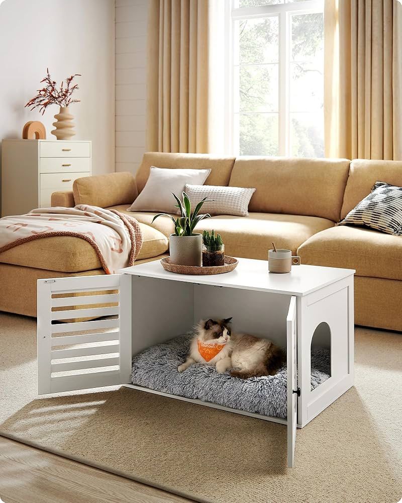 Cat Litter Tray with Removable Divider, 2 Slat Doors, Cat Litter Tray, Side Table, 80 x 53 x 49 cm $50