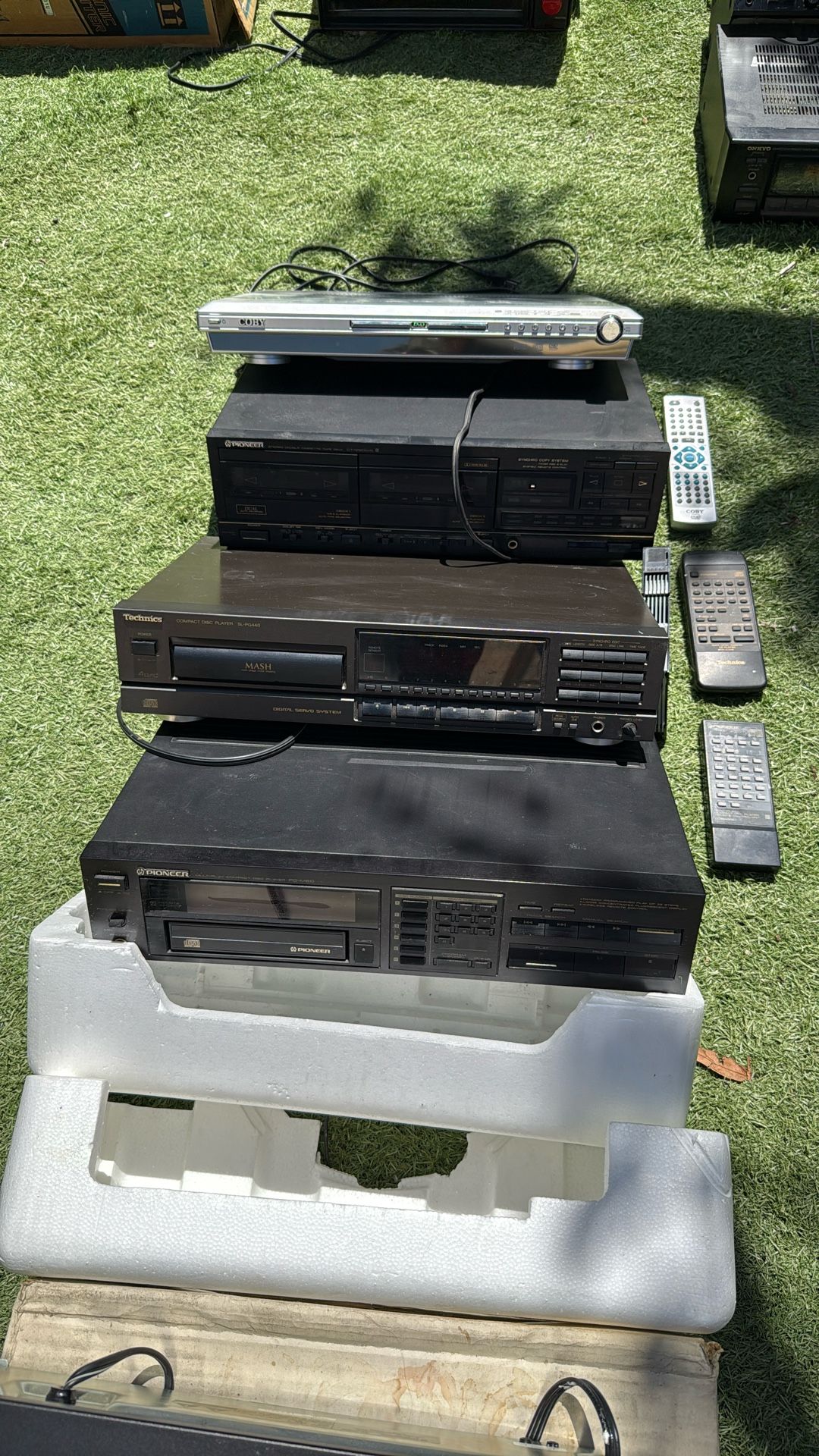 Two Cd Players, One Tape Player, One DVD Player And One Pioneer Turntable