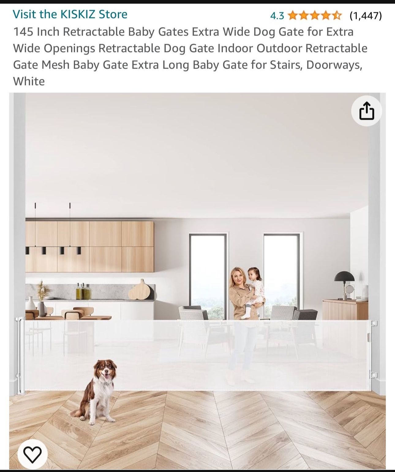 [145" Extra Wide Baby Gate for Large Openings] - KISKIZ retractable baby gates fit openings up to 145" wide and 35" tall, you can easily and quickly adjust the retractable baby gate to fit your opening according to your needs. [Retractable Gate to Save Space] - This retractable dog gate is easy to use in high traffic areas. When not in use or when guests are visiting, the retractable baby gate retracts to save space. Give your home more space and flexibility, and you don't have to worry about tripping over a bulky gate that's always in the way. [Effective Barrier] KISKIZ retractable baby gates are a versatile home security solution. Whether you want to create a safe baby fence play area for your baby or keep your pets out of certain areas, this extra long baby gate has got you covered. [Fits Any Baseboard] - The bottom hardware of the retractable dog gate can slide up and down to fit any height baseboard, no need to buy extra spacers, making it easier and safer to install. [One-Hand Operation] - The large baby gate can be opened and closed with 1 hand, giving you a more convenient experience, but it is difficult for babies and pets. [Perfect for Indoor and Outdoor] - The large dog gate can be used both indoors and outdoors, such as open kitchens, bottom of stairs, doorways, decks and more.