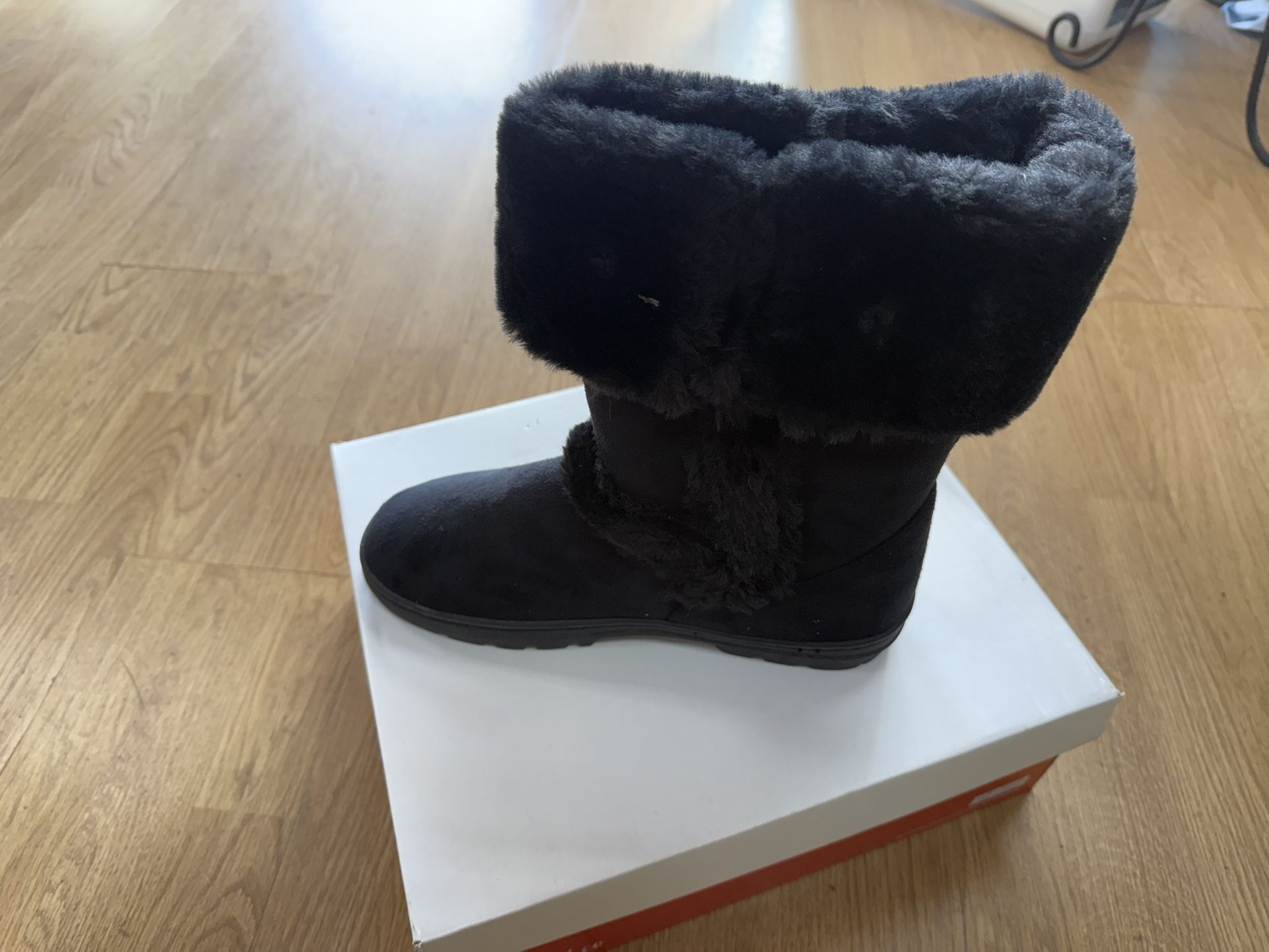 Stylish black fur boots, perfect for winter. Size 11 New never used