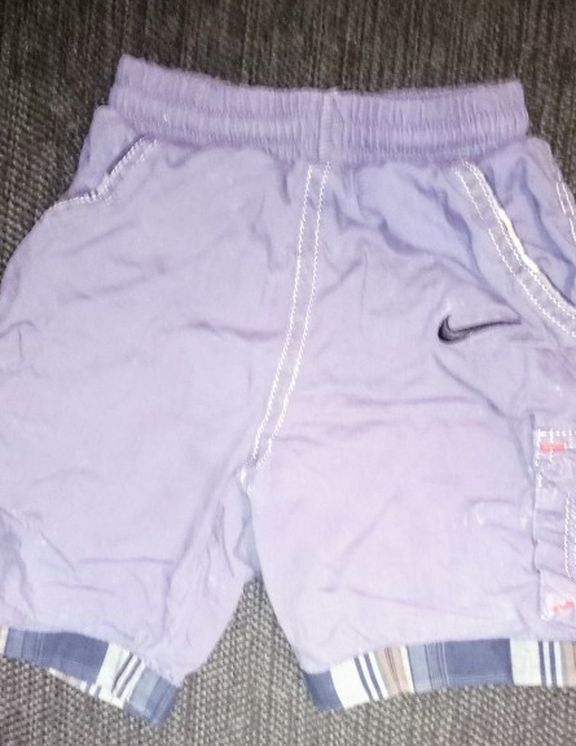 ° Toddler Boys Nike Cargo Shorts ° Size: 18 months ° Colors: gray with white stitching and multicolored plaid cuffs on the bottom ° Shorts have 2 Side Pockets with velcro closures, 2 open front pockets, elastic waistband, drawstring inside & 2 mock pockets in back. ° Great Pre-owned Condition