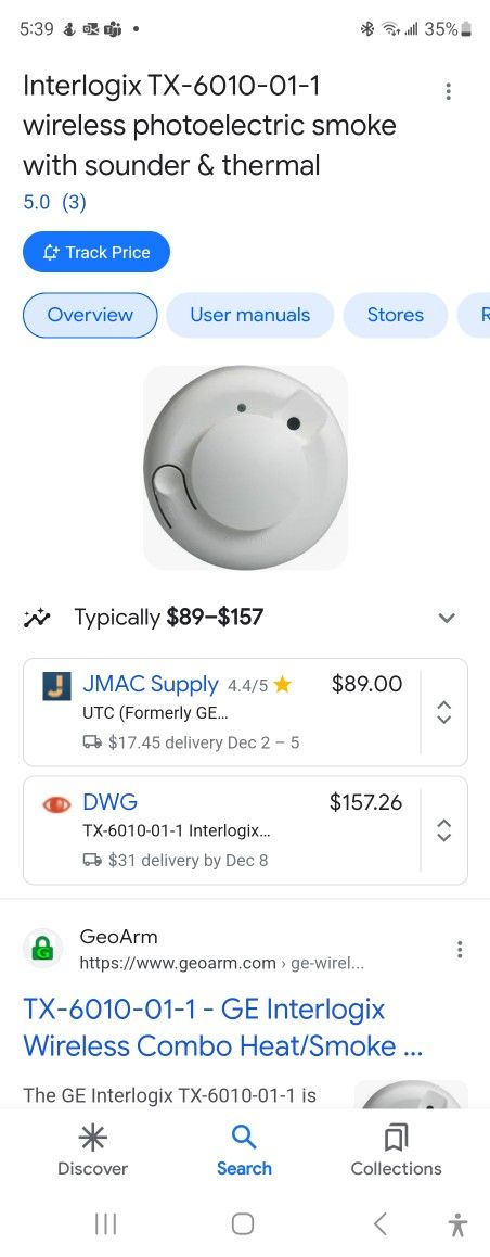 GE Interlogix Wireless Combo Heat/Smoke Detector Item# TX-6010-01-1