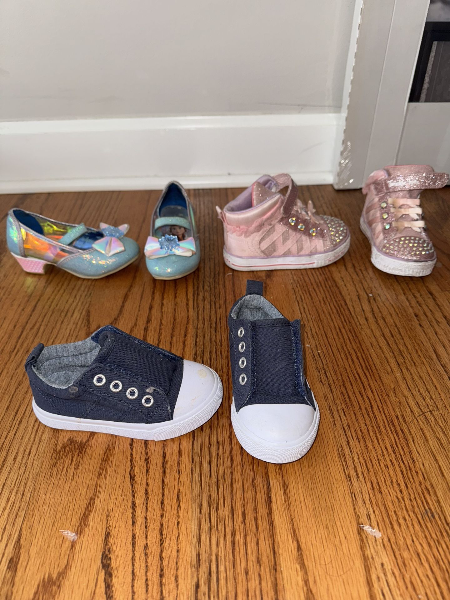 Pink Twinkle toe shoes size 7 toddler $7 Light blue frozen shoes size 6 toddler $7 Dark blue cat & jack shoes size 6 toddler (never worn) $5 All 3 for $15