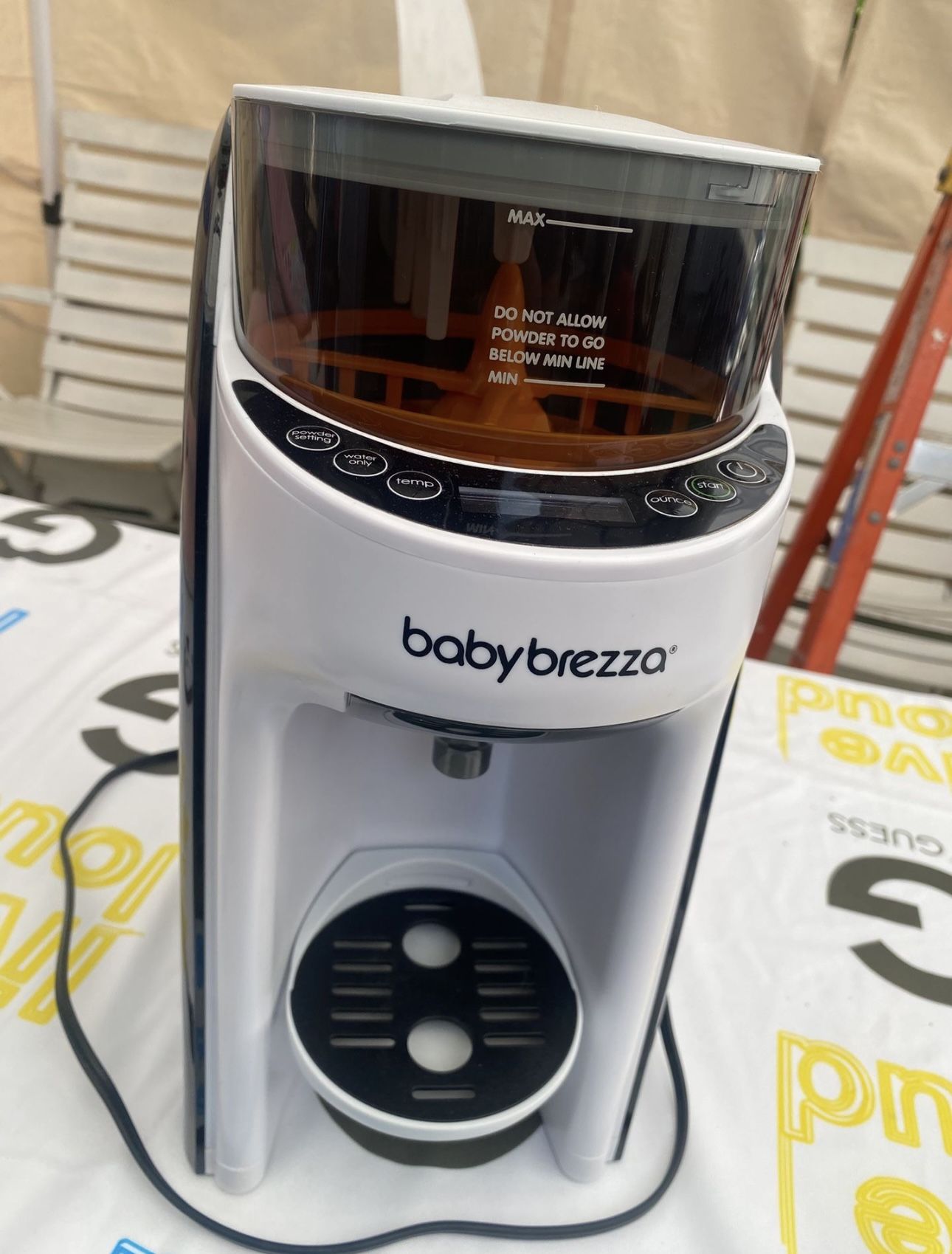 In excellent condition, no box, working great. My friend bought for me as a gift but my baby doesn't drink formula so we haven't used it. These formula dispensers are definitely worth every penny. They can adjust the amount of formula dispensed from 2 oz to 10 oz with the push of a button. They also have a few different temperature and formula ratio settings depending on which formula you use to repeatedly make a perfect bottle for your little one.