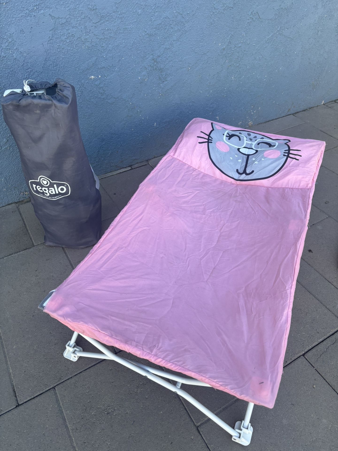 Dimensions: 46.5”L x 24” W x 9.5” H For Ages: 2 to 5 years Weight: Children up to 75 lbs Sets up and folds down in seconds for storage/travel Folds like a camping bag chair Durable, waterproof nylon is easily wipeable Sturdy, all-metal frame