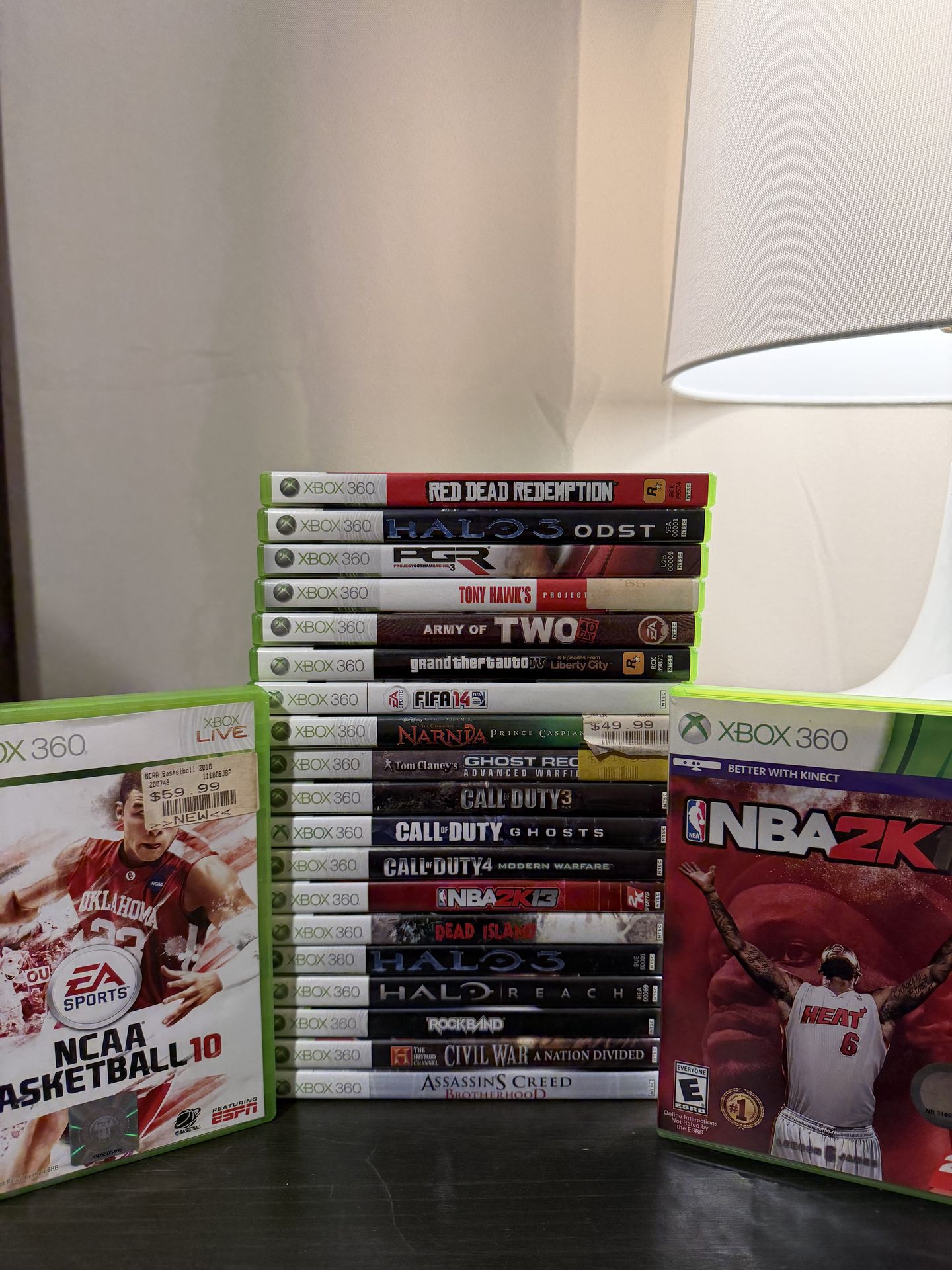 Xbox 360 Games for Sale ๐ฎ All games are available unless marked sold. Halo 3 โ $8 Halo 3: ODST โ $10 Halo Reach โ $10 Call of Duty 3 โ $8 Call of Duty 4: Modern Warfare โ $10 Call of Duty: Ghosts โ $8 Assassinโs Creed: Brotherhood โ $5 Ghost Recon: Advanced Warfighter โ $10 PGR 3 โ $10 NBA 2K13 โ $5 NBA 2K14 โ $5 FIFA 14 โ $4 Other Games Red Dead Redemption โ $10 Grand Theft Auto IV โ $10 Dead Island โ $6 Rock Band โ $6 Tony Hawkโs Project 8 โ $8 Army of Two: The 40th Day โ $7 Civil War: A Nation Divided โ $10 Chronicles of Narnia: Prince Caspian โ $6 Higher Value NCAA Basketball 10 โ $70 - Local pickup only Thank you for looking! Nick