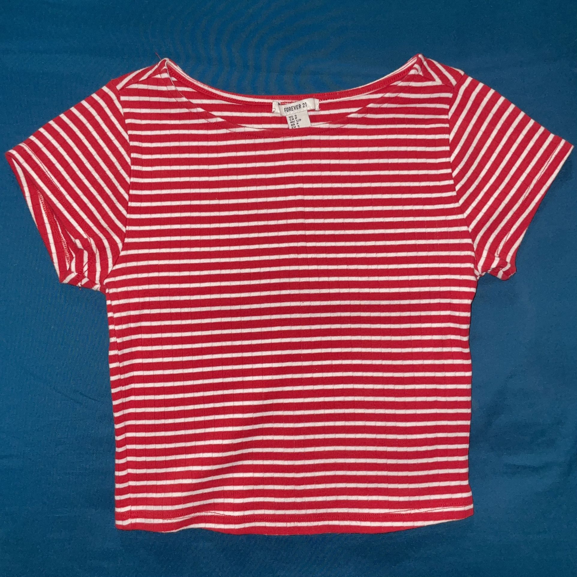 Forever 21 Red & White Striped Cropped Ribbed Tee Shirt Small