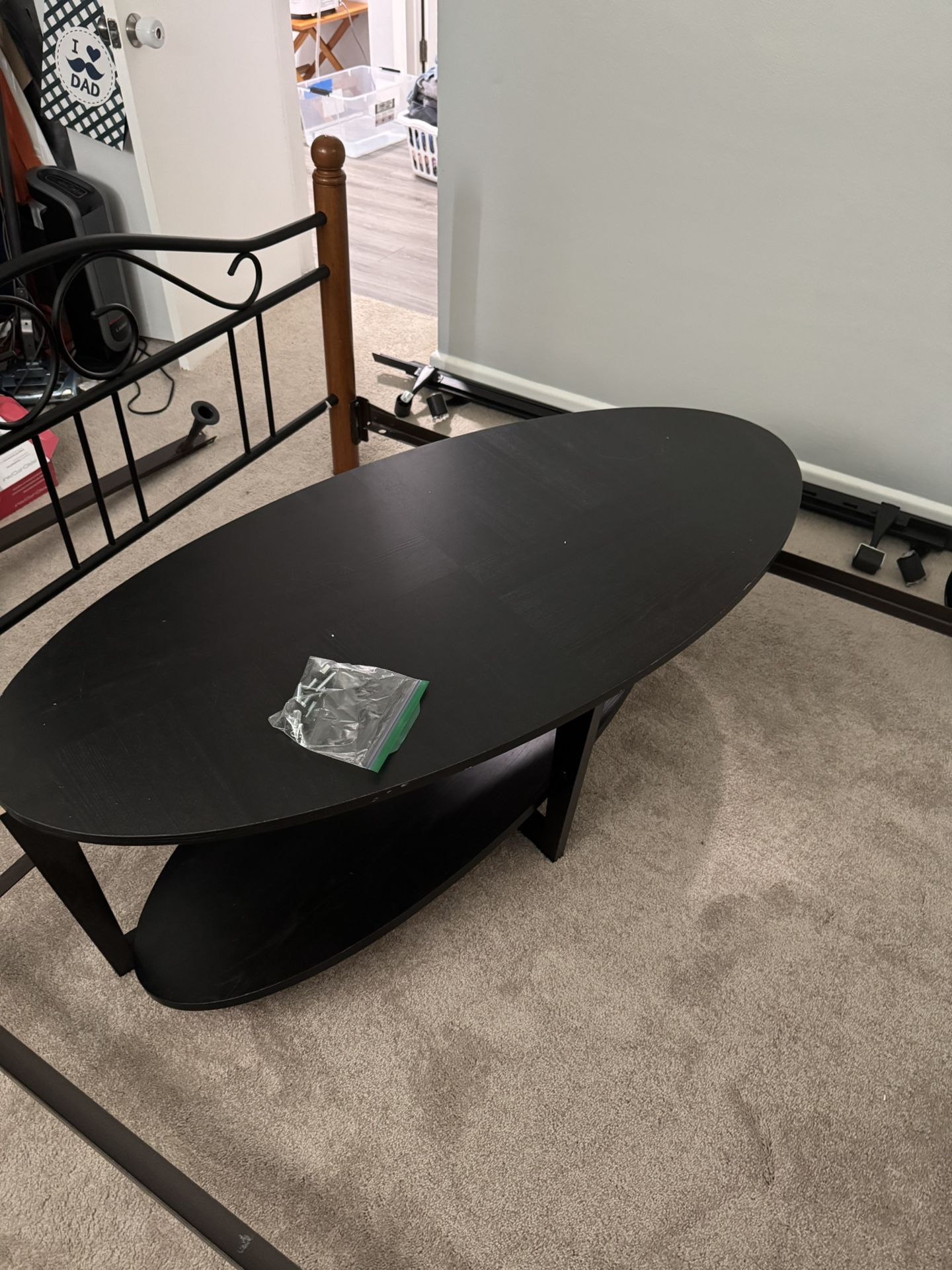 Black wood oval two shelf table