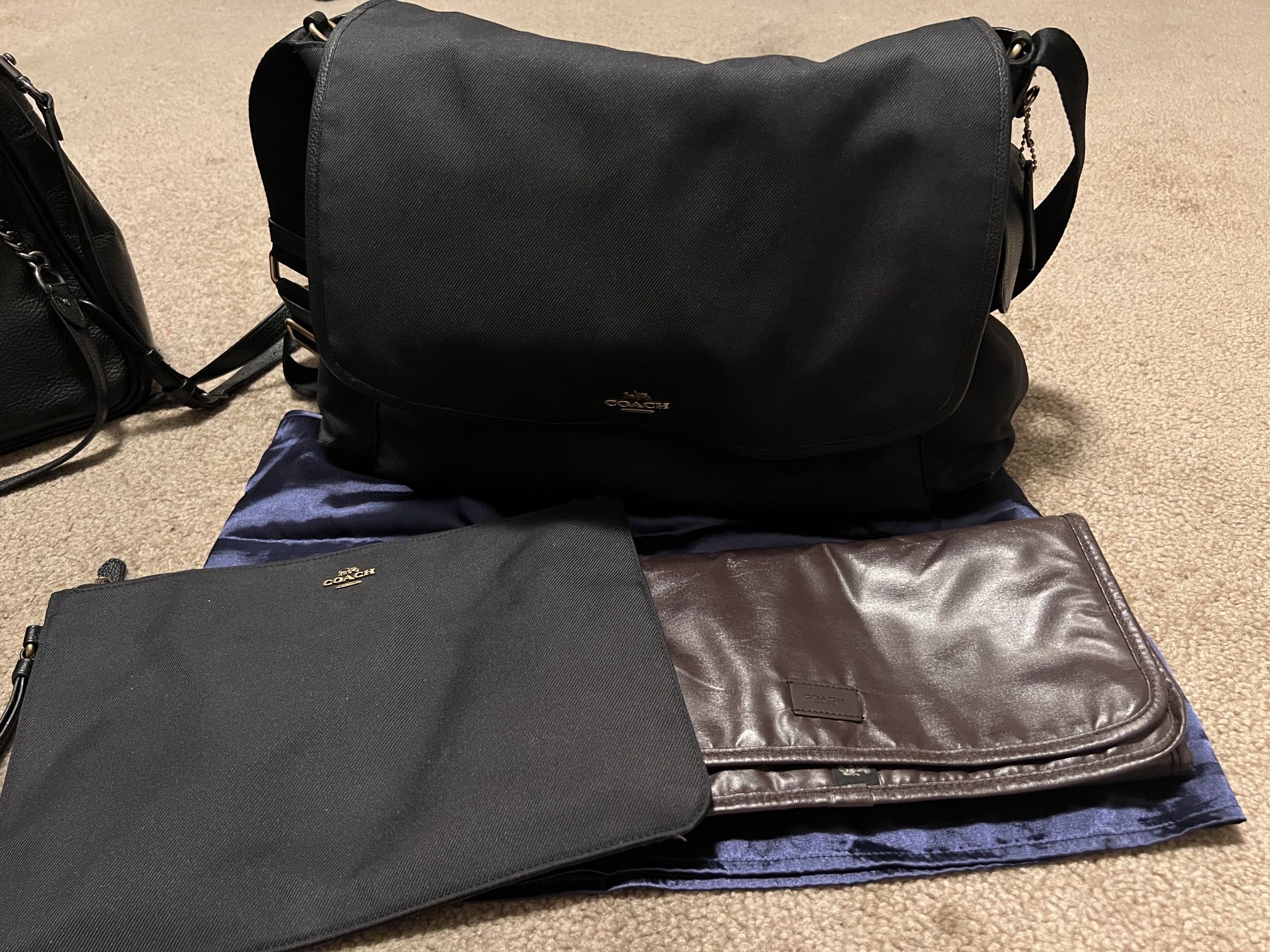 Very clean and well taken care of. Wear as a crossbody and has straps to attach onto stroller. Comes with envelope pouch for diapers or small items and a diaper changing mat. So many pockets. Only willing to let it go for the right price because I do love it so much. You can even use it as a weekend bag. $200 FIRM