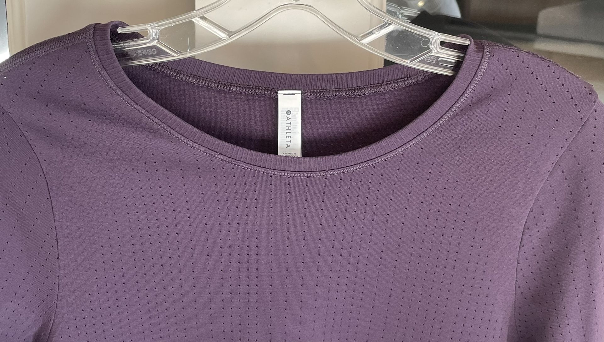 New Athleta in motion long sleeve purple, (Spiced Cabernet) top in size small. In motion top has ventilation to keep you cool and grippers at the inner hem to prevent it riding up. Top has never been worn is new without tag and retails for $69.00 selling for $19.00