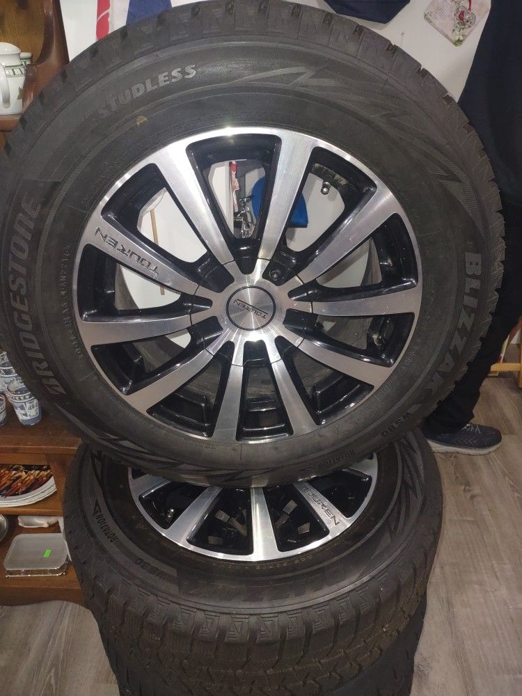 The bottom two tires have wear on the outside the rims alone sell for almost $200 each there torrent rims the tires are Bridgestone lug nut size 5x 115