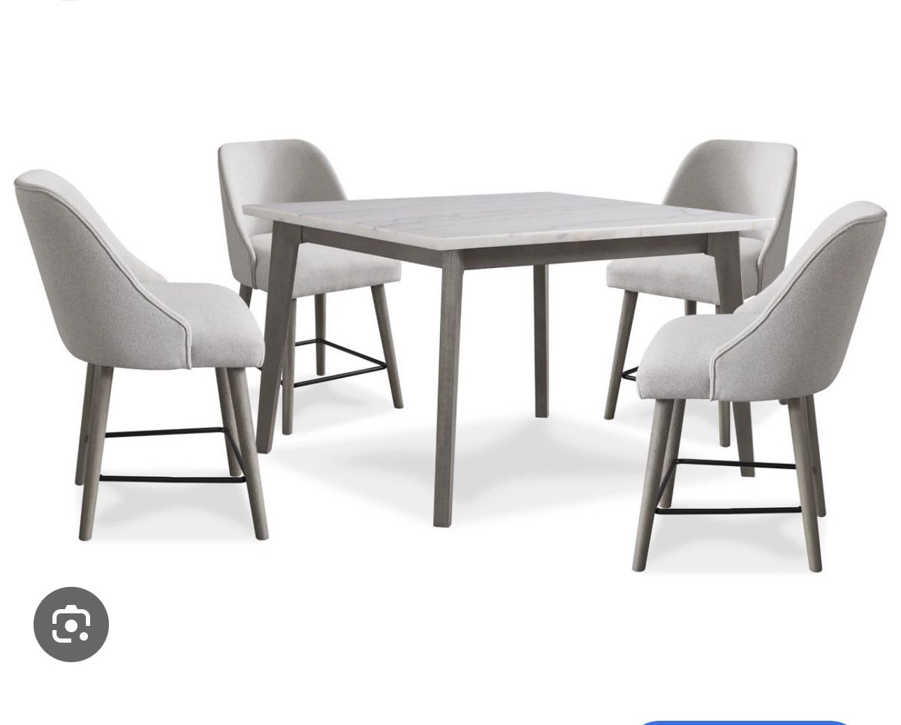 Real heavy marble counter-height table (54” × 54”, height ~35.5”) with 3 sturdy matching chairs. Great used condition — solid, stylish, and perfect for any dining area. Pickup in Buffalo Grove.