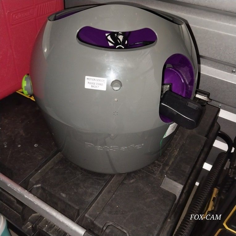 Barely used , works great! Has adjustment for height and distance. It makes a chirping sound that let's you know a ball is coming. Motion detection safety keeps it from launching if dog/kids get too close Hopper can be loaded with multiple balls at once and it will launch them one by one Can powered by wall plug inside or with batteries for outside play
