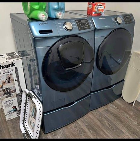 Samsung Steam washer & dryer with pedestals lightly used and well cared for. Still like NEW condition. Washer 5.0 cf Dryer 7.4cf. Comes from a pet, smoke free home.