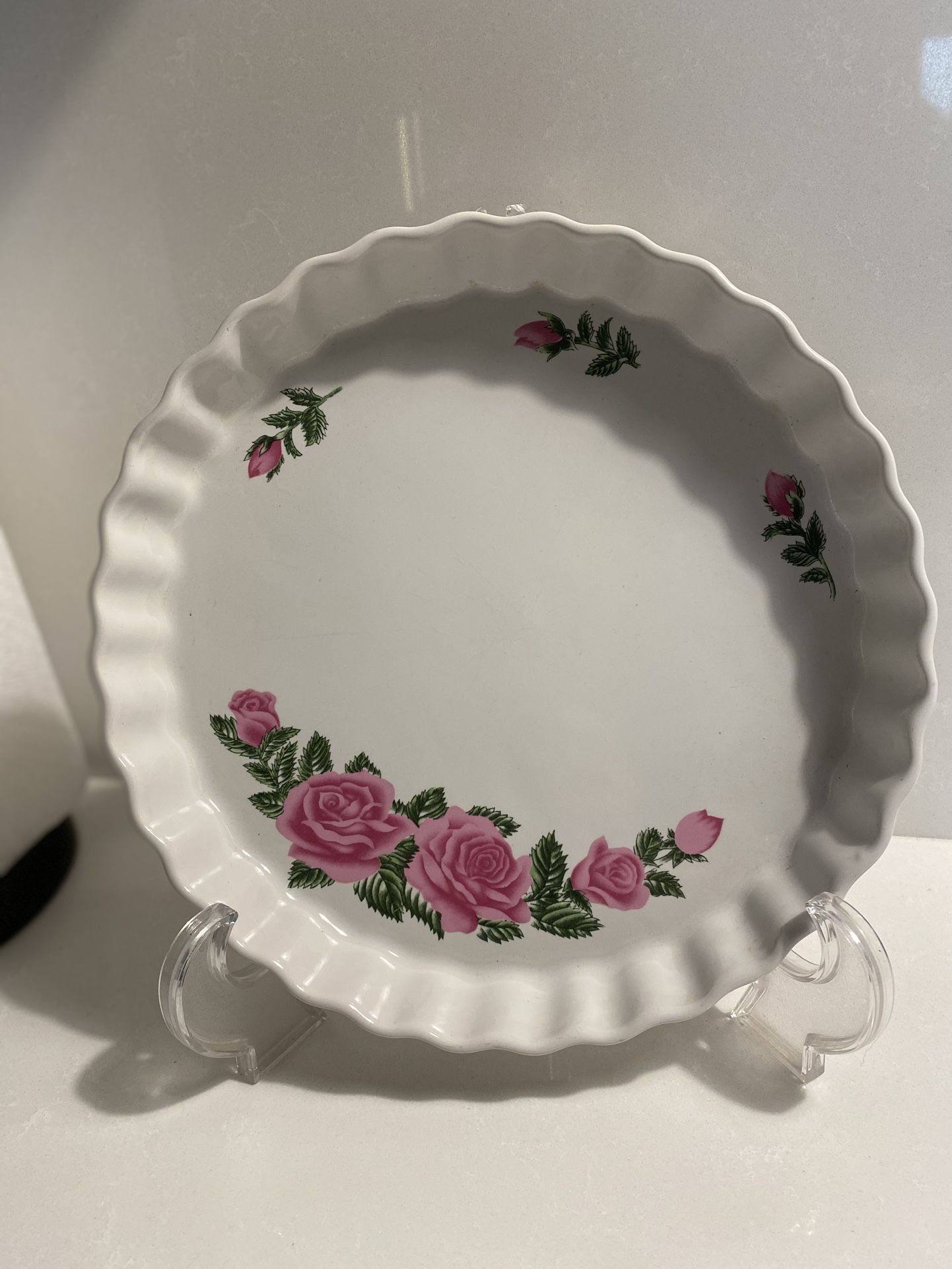 Vintage porcelain baking dish, Christine Holm, good condition. Rose pattern