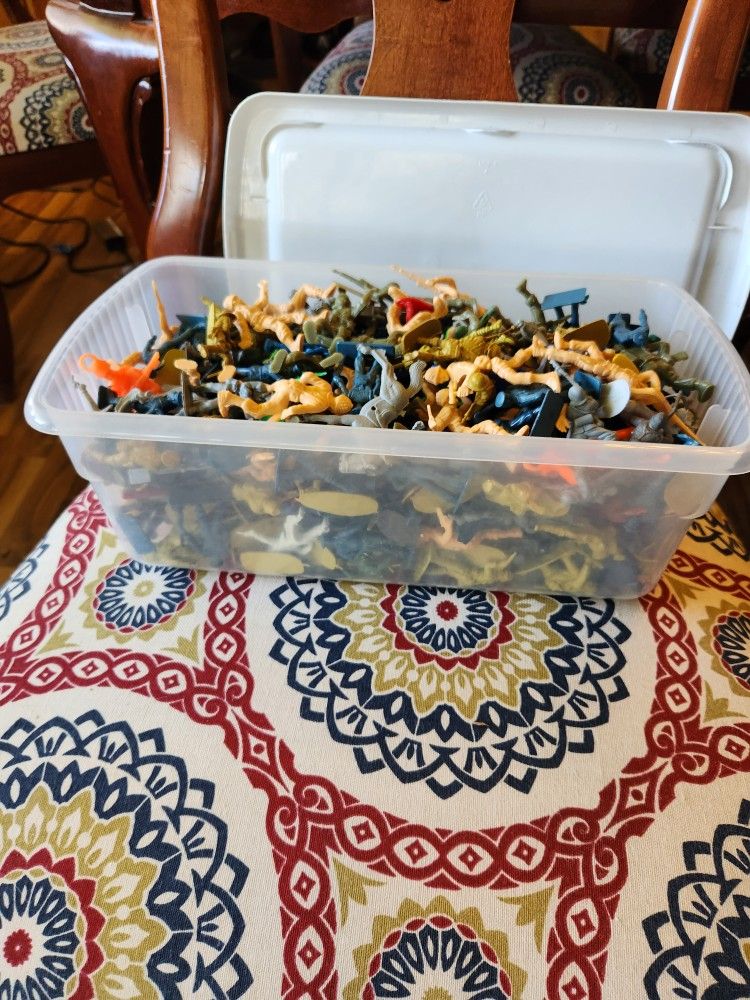 Huge tub of vintage army men. We've had them for 20 years and got them pre owned.
