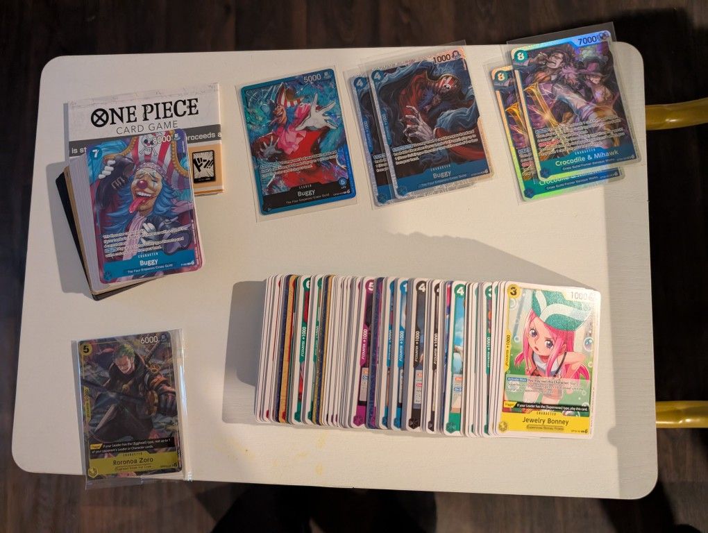 Complete Buggy Start Deck 100 random OP cards No doubles and many shiny Zoro promo unopened $5 cash and Pick up only 9025 Mill valley cir fort Worth