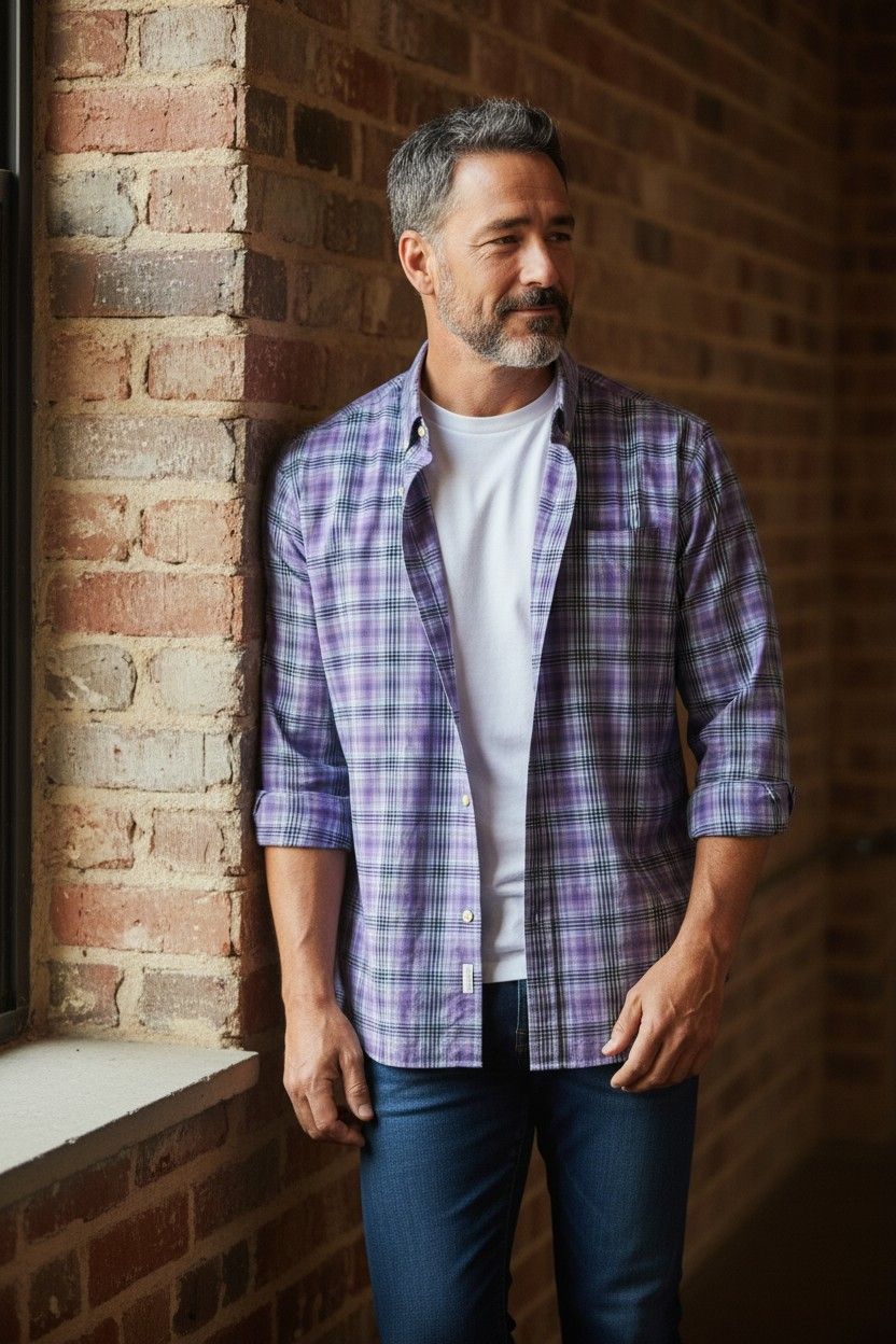 Men's Jos. A. Bank Traveler's Collection button-down shirt. Features: • Size XL • Tailored Fit • Purple and blue plaid pattern • Button-down collar • Chest pocket • Long sleeves with button cuffs • 100% cotton fabric Condition: Good pre-owned condition. Perfect for: • casual wear • business casual outfits • everyday style
