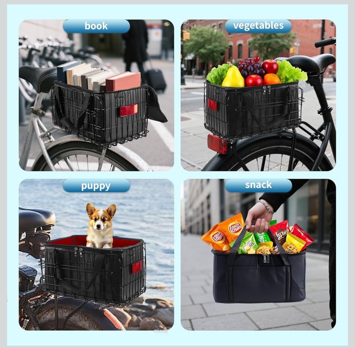 Foldable Bike Basket Rear Bicycle Baskets for Adult Bikes Spring System for Carrying Grocery Small Dog Cat