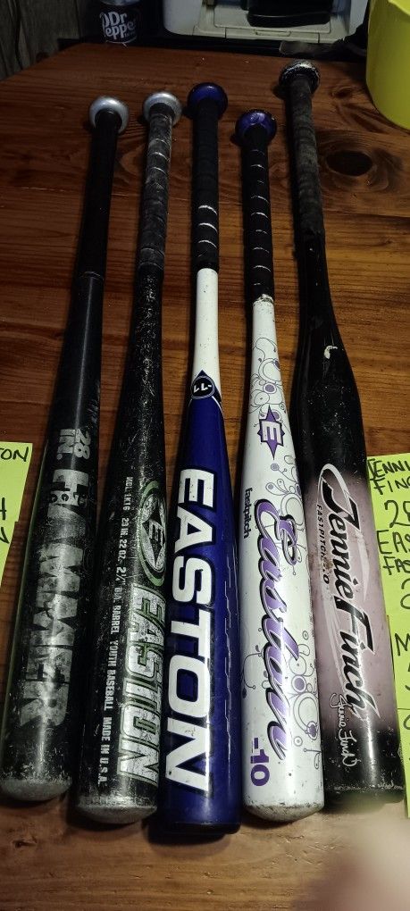 The guys are all easton 28 is a black hammer the 29 is a magnum the 30 is a typhoon the girls the 28-in is a Eastern fast pitch and the 31 inch Mizuno easton. $20 each and I don't hold an item unless you're on your way I have these posted on other sites as well