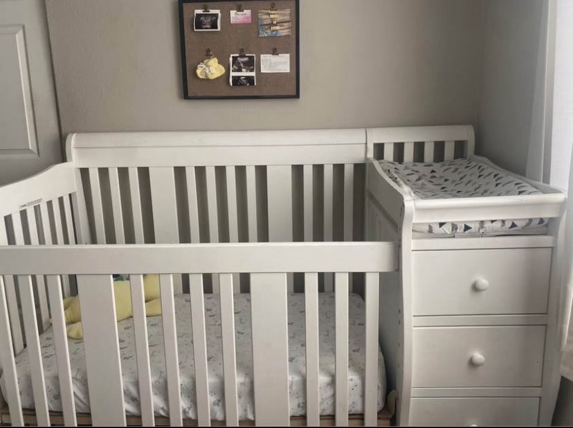 Convertible crib with attached changing table Clean Lightly used