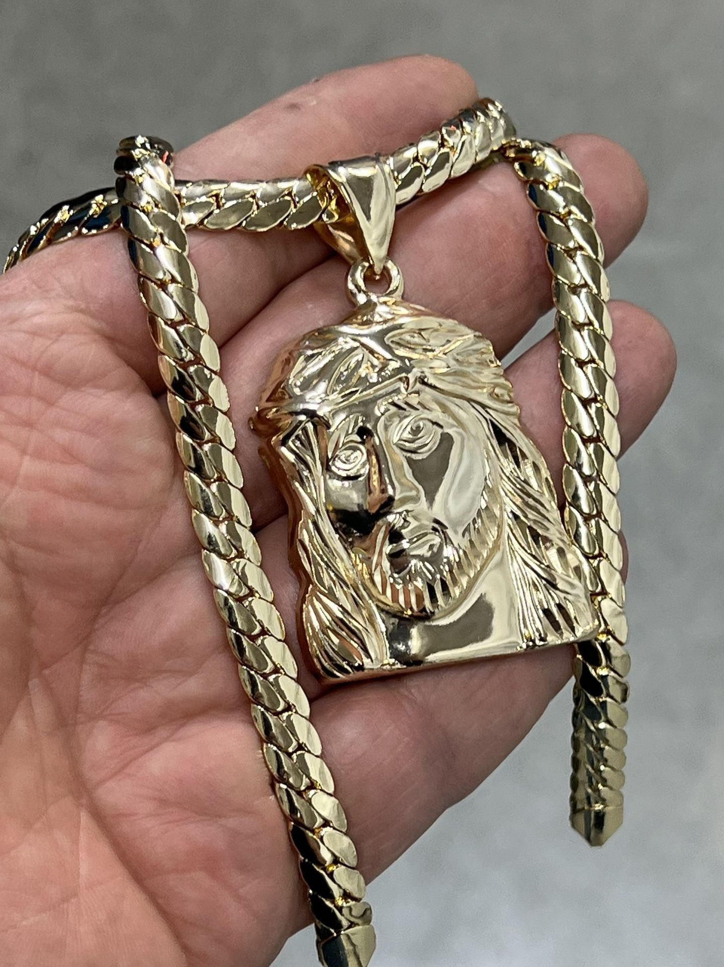 14k premium gold plated none tarnish Jesus pendant and necklace ✅✅✅