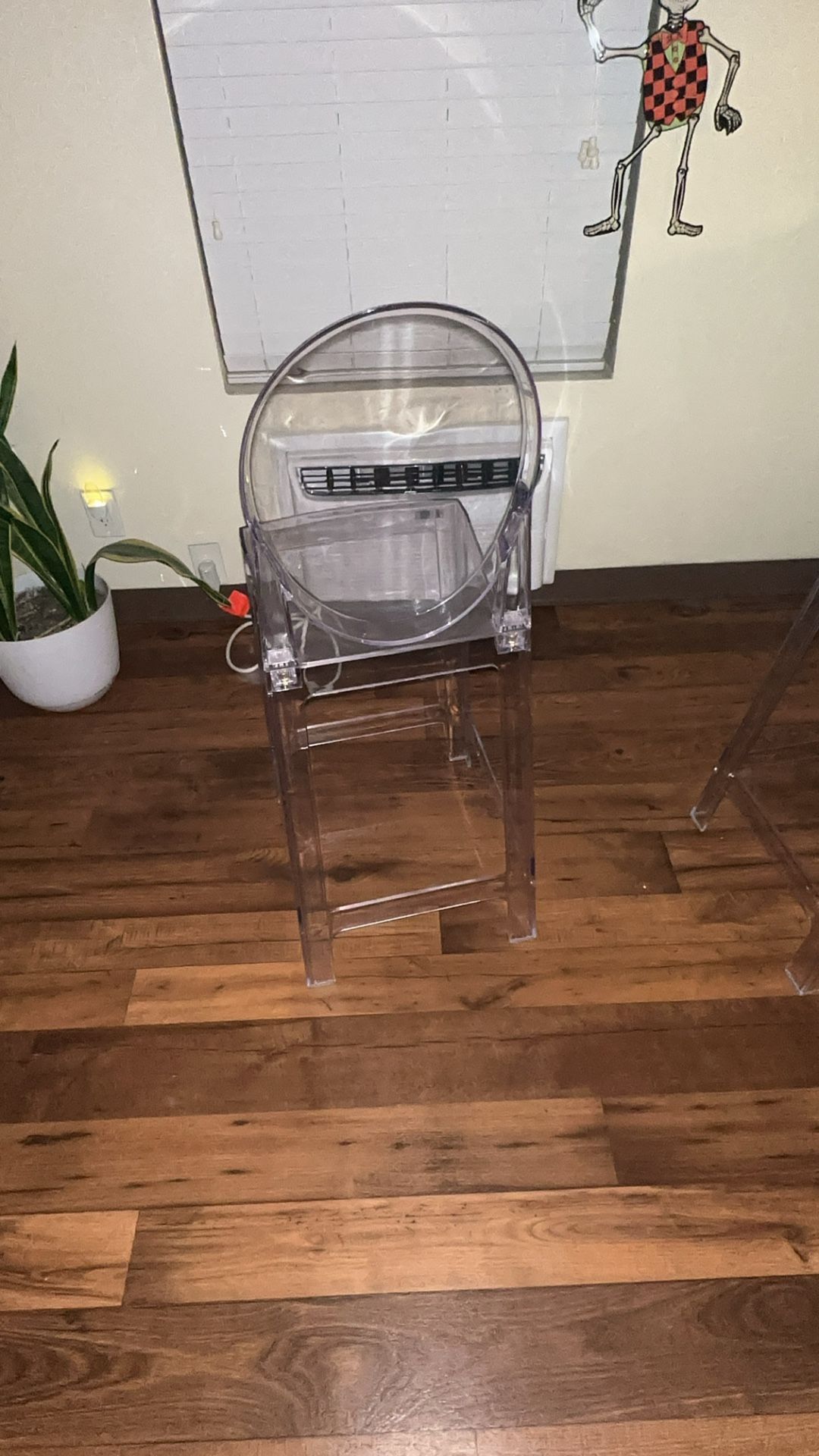 Clear plastic chairs, a total of four in very good condition