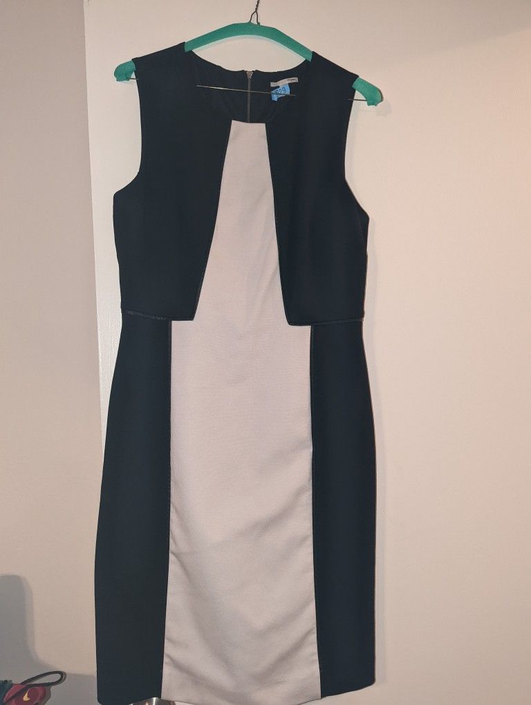 Beautiful black and white business dress for sale has a little stretch to it goes to the knee perfect for your business meeting or a semi-formal event as the dress is really classy. Can purchase a loan or in a bundle with other dresses.