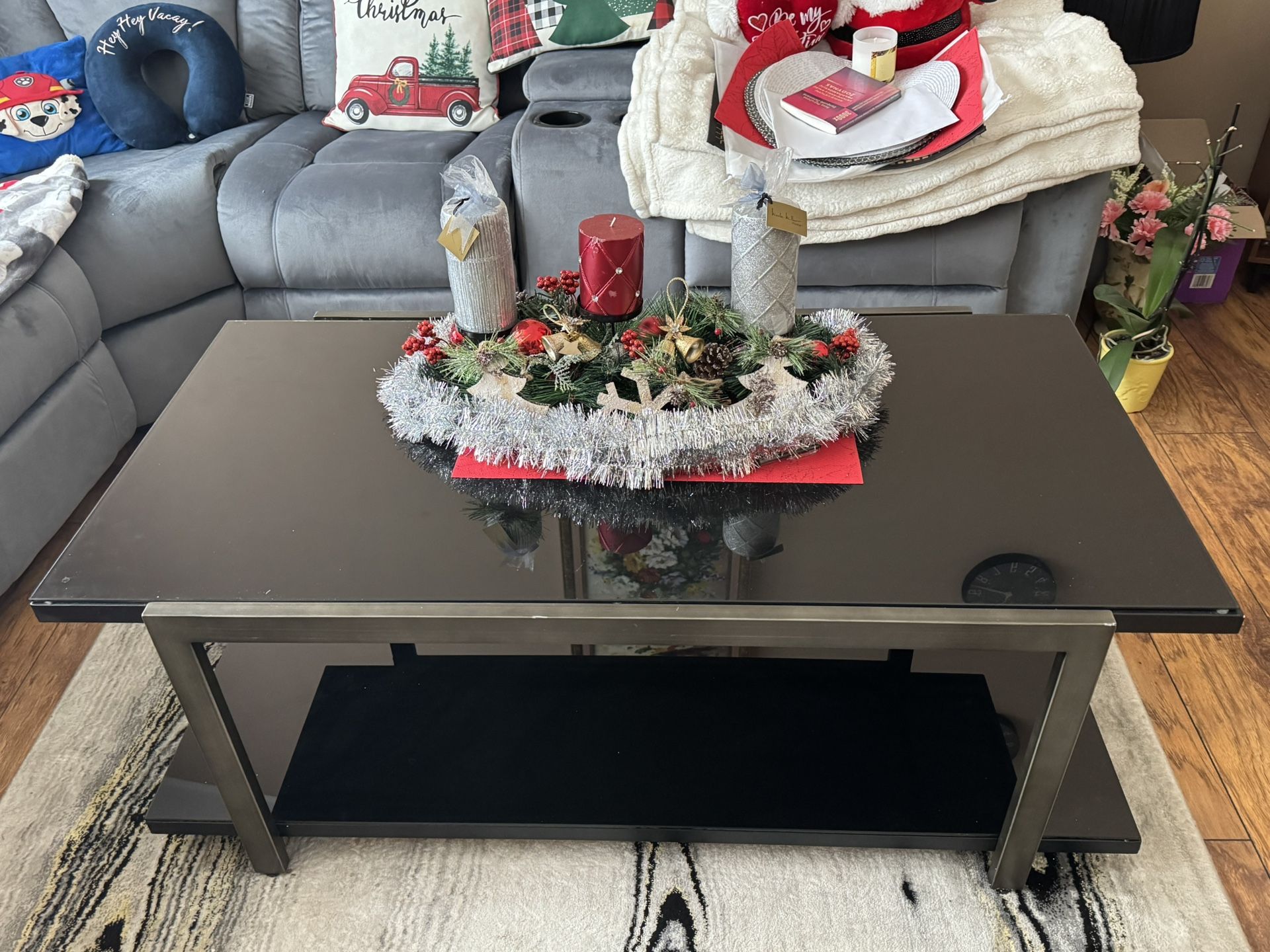 Black glass table & 2 extra stands. Set of 3. Perfect condition, no any damage or scratches. Used, but almost like new. Selling as per moving situation.