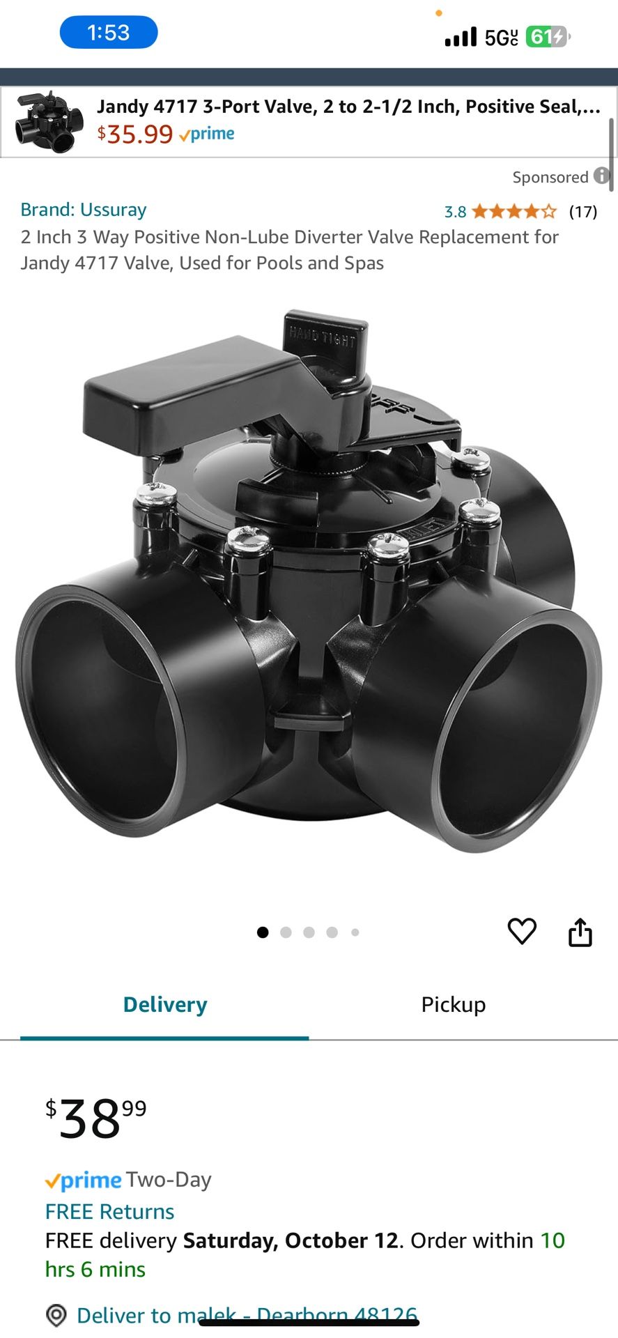 2 Inch 3 Way Positive Non-Lube Diverter Valve Replacement for Jandy 4717 Valve, Used for Pools and Spas