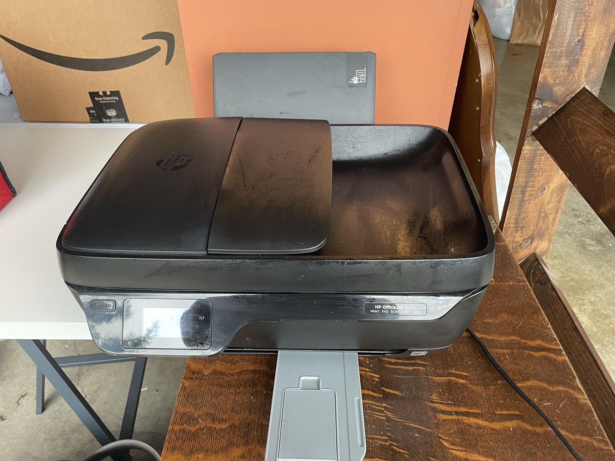 This has been such a great printer for the last couple years. It’s had really light use and has a scanner, copy machine, wireless printing, fax machine and WiFi connection. It works well and has computer apps for managing all of this. Comes with half a ream of printer paper.