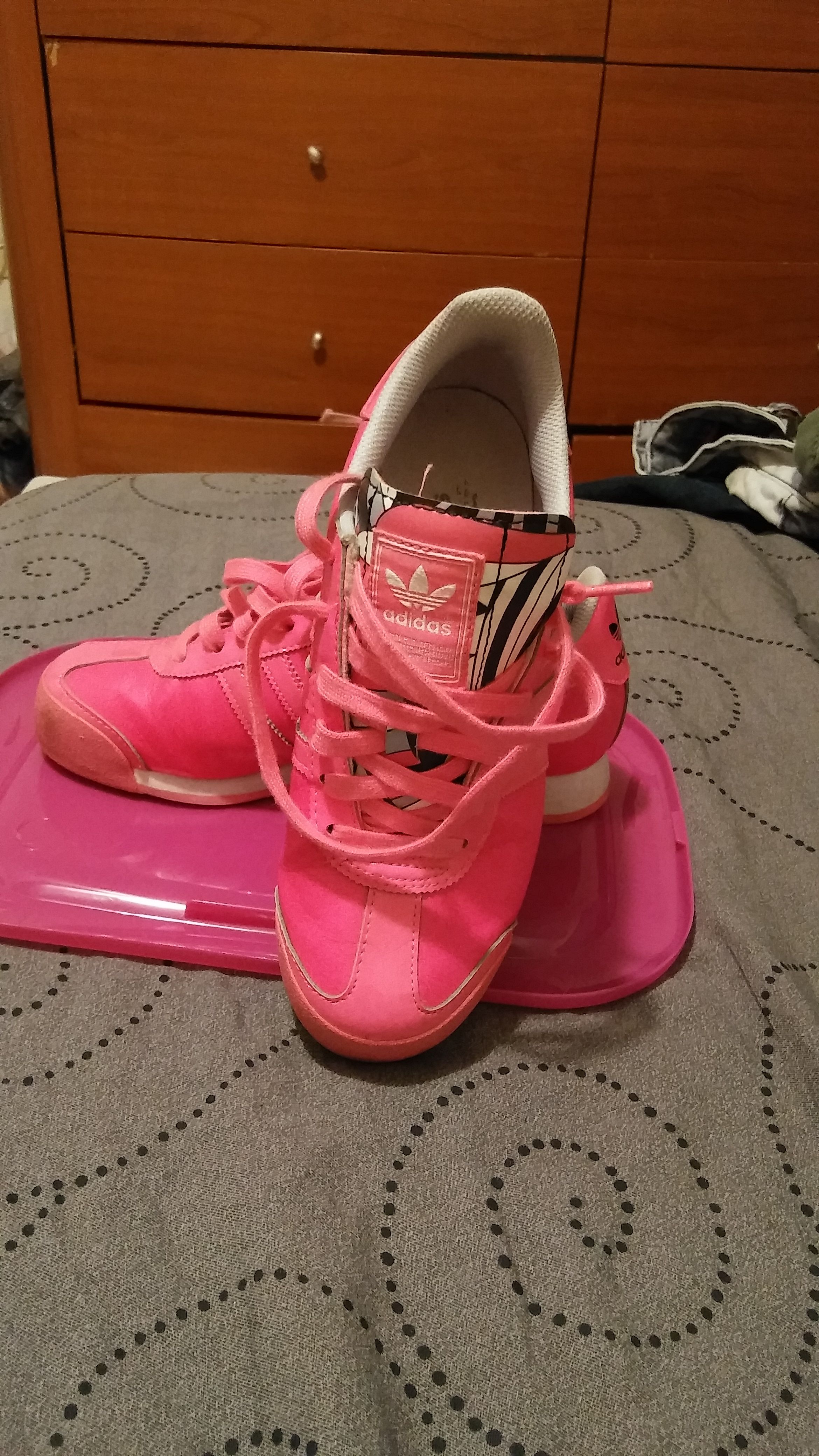 I have a pair off fluorescent pink Adidas in great condition size.. 6.5