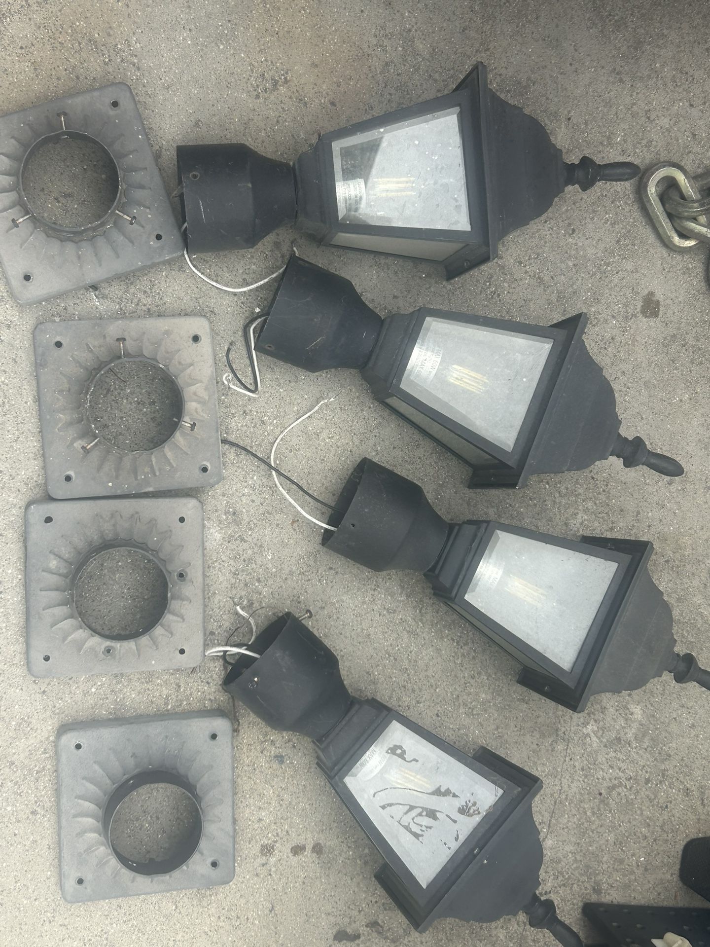 Set of four fence pillar lights As pictured They just need to be cleaned and possibly panted $20