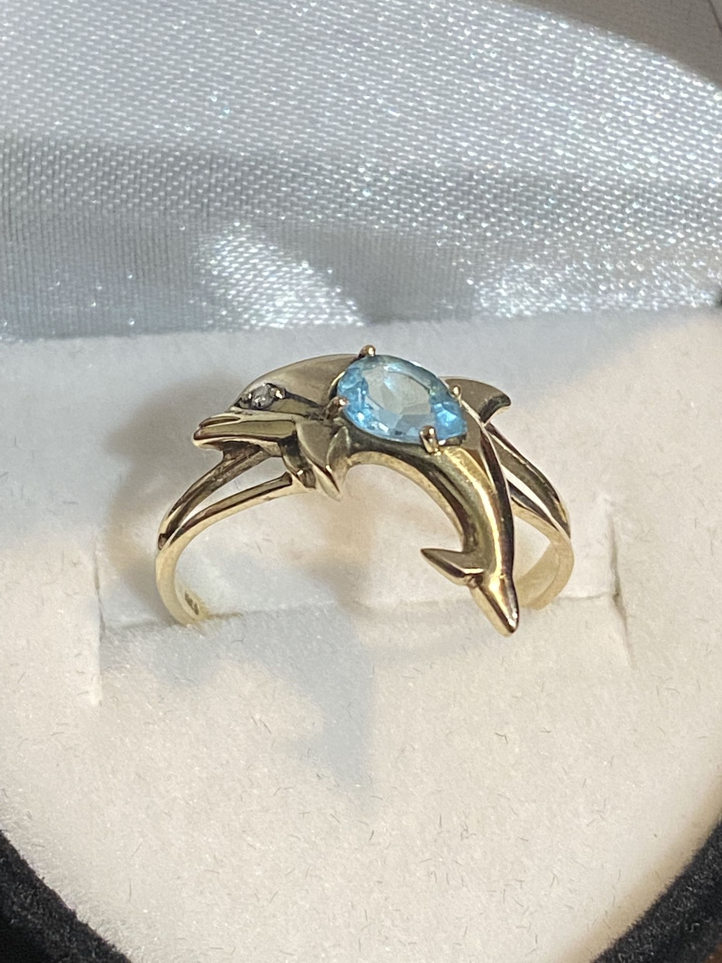 Ring Size: 6.75 Material: Yellow Gold Stone: Blue Topaz Weight: 1.8g