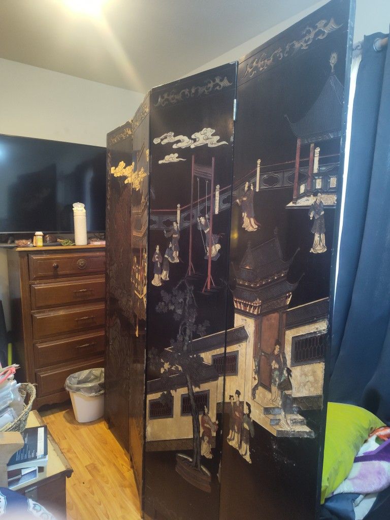 . The object in the image is a Coromandel screen,Antique Chinese room divider! Very Rare beautifully , painted.4 panels .