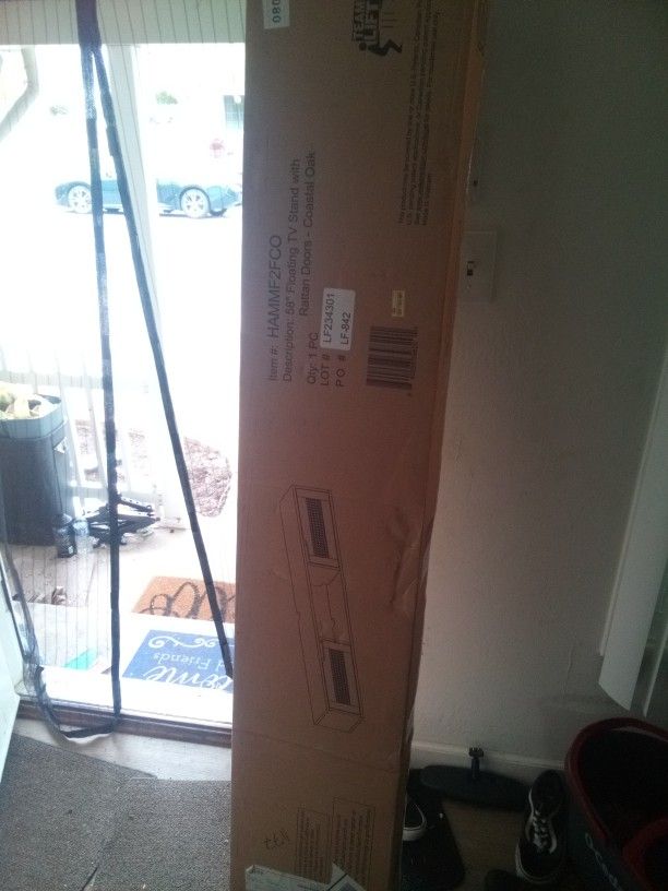 BRAND NEW NEVER OPENED!!! 58" Floating TV Stand with rattan doors- Coastal Oak