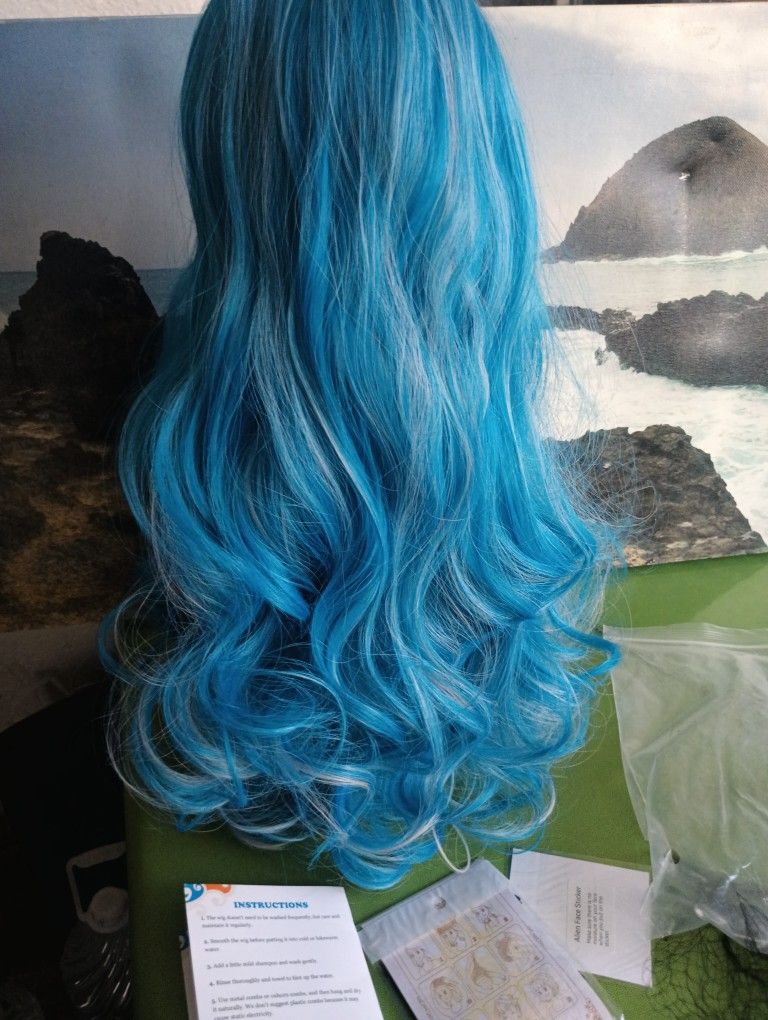 $$10 only beautiful light blue curly ombrey wig