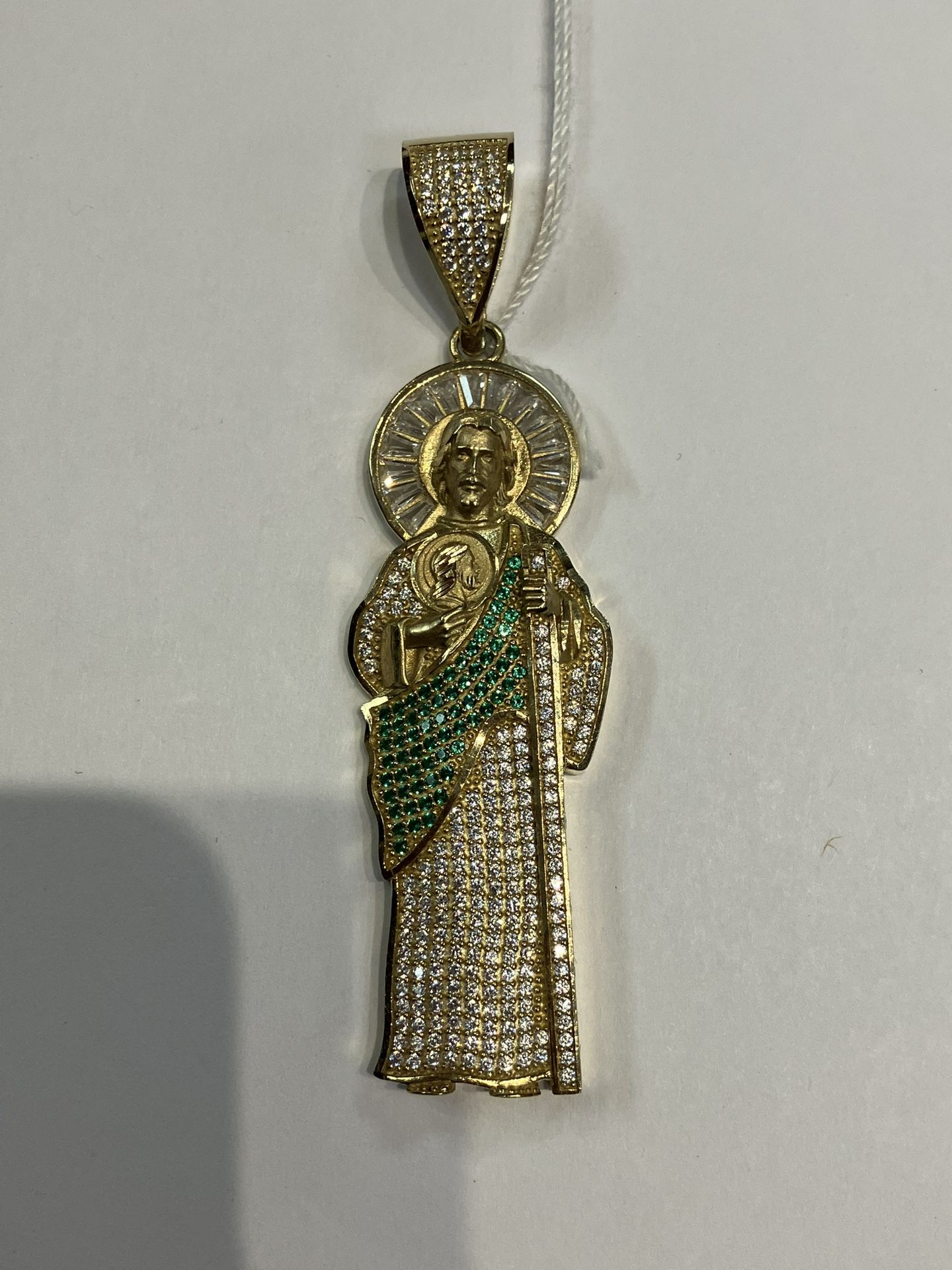 10kt Yellow Gold San Judas Pendant 109089-1 JE - ask for Julie Oro express Mesa pawn shop Preowned jewelry pendant Dije de San Judas saint jude pendant 10kt 9.30 grams. With clear stones and green stones Layaway available only in store Pickup only at 421 E Broadway rd Mesa,Az Ask for Julie Monday- Saturday 9am-7pm Sunday 10am- 6pm 4806108009