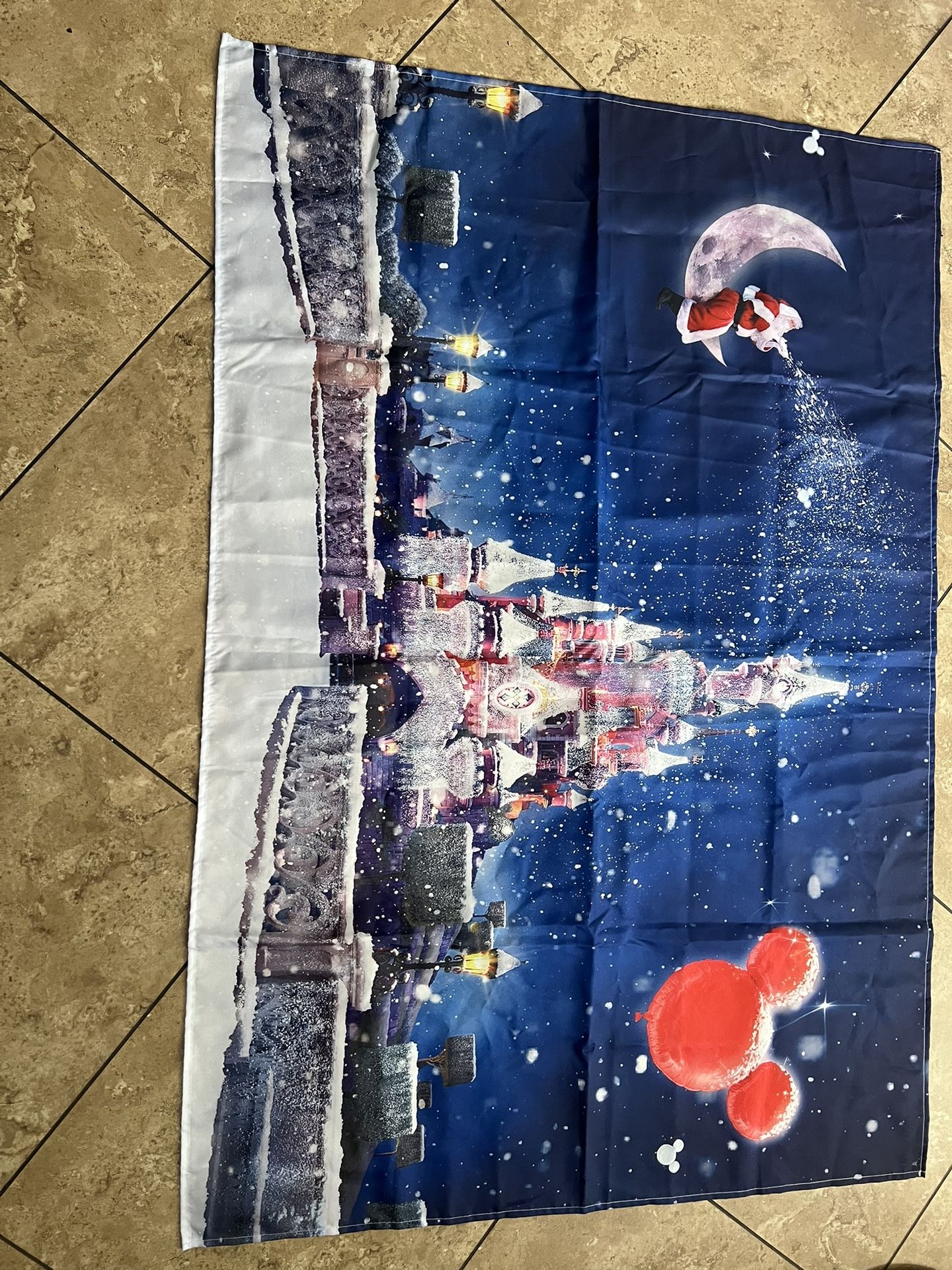 Used beautiful Disney castle Santa backdrop decor great to set up for pictures for Xmas size 59Wx51H inches please only contact when truly ready to pick up